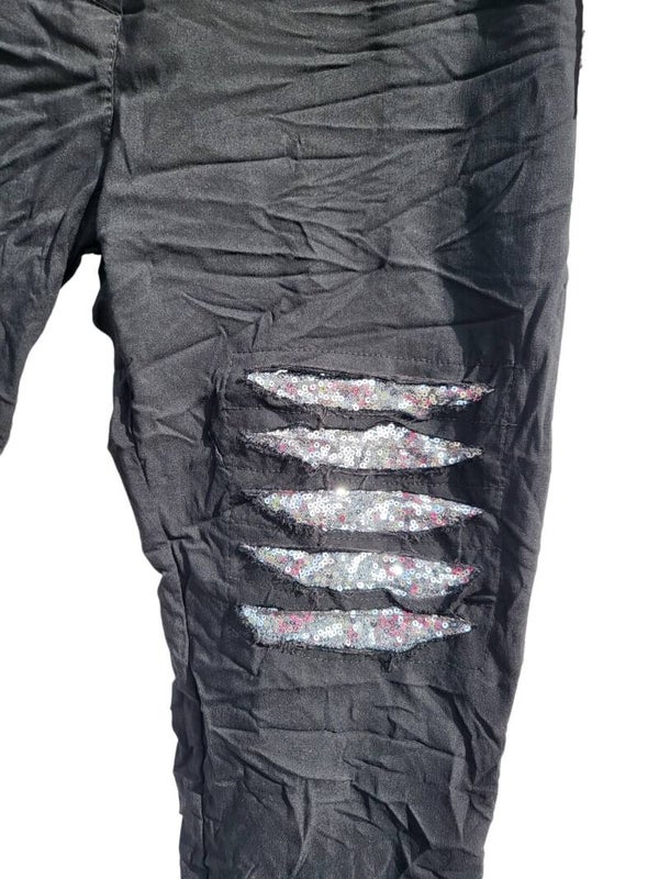 Stretchhose schwarz mit Pailletten, Gr. XXL, 1x verfügbar