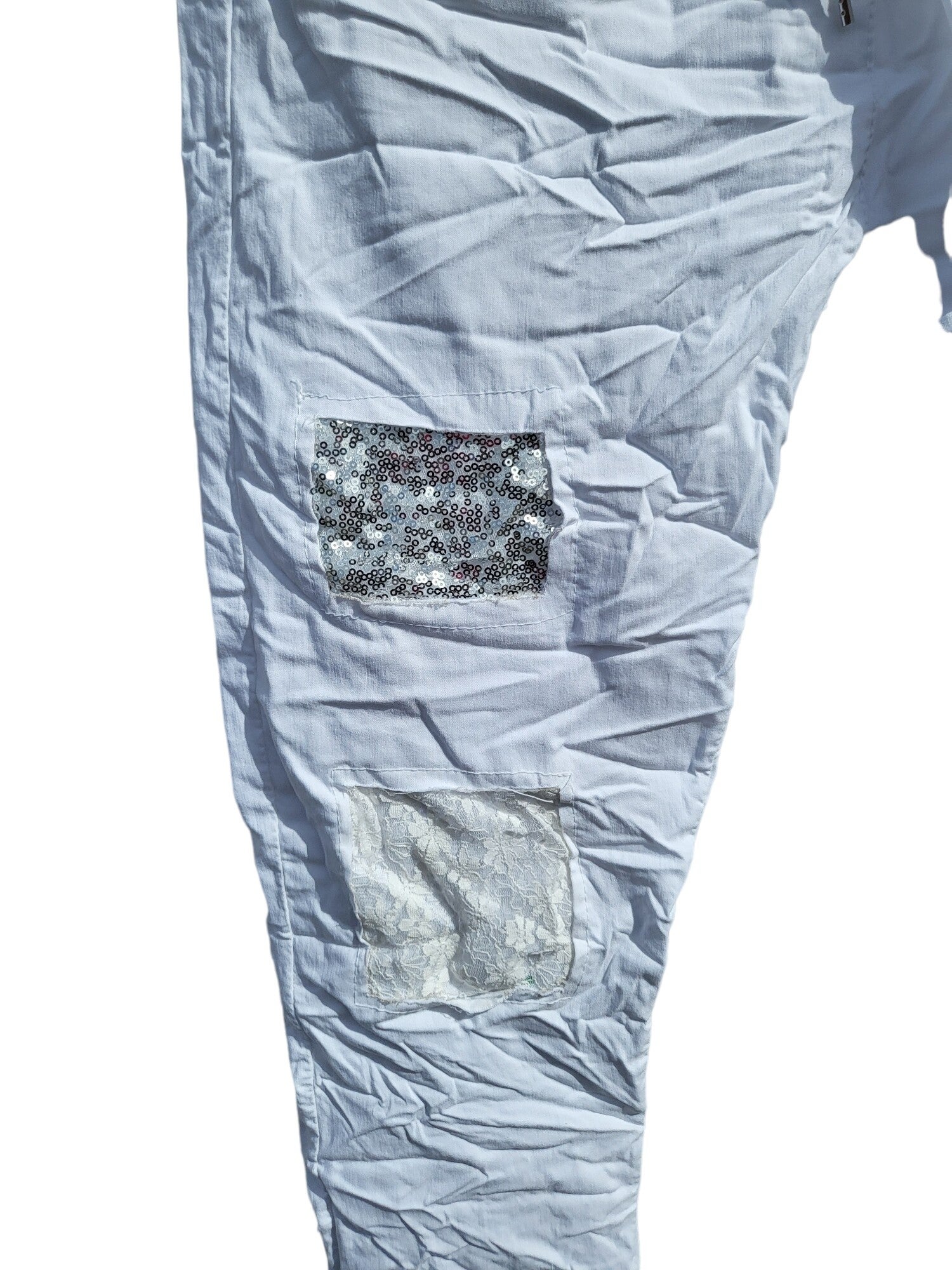 Stretchhose weiss mit Pailletten, Gr. 42/44, 1x verfügbar