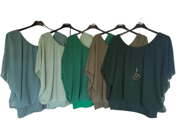 Fledermaus-Shirt mit Kette dunkelgrün, Gr. 38 - 46, 1x verfügbar