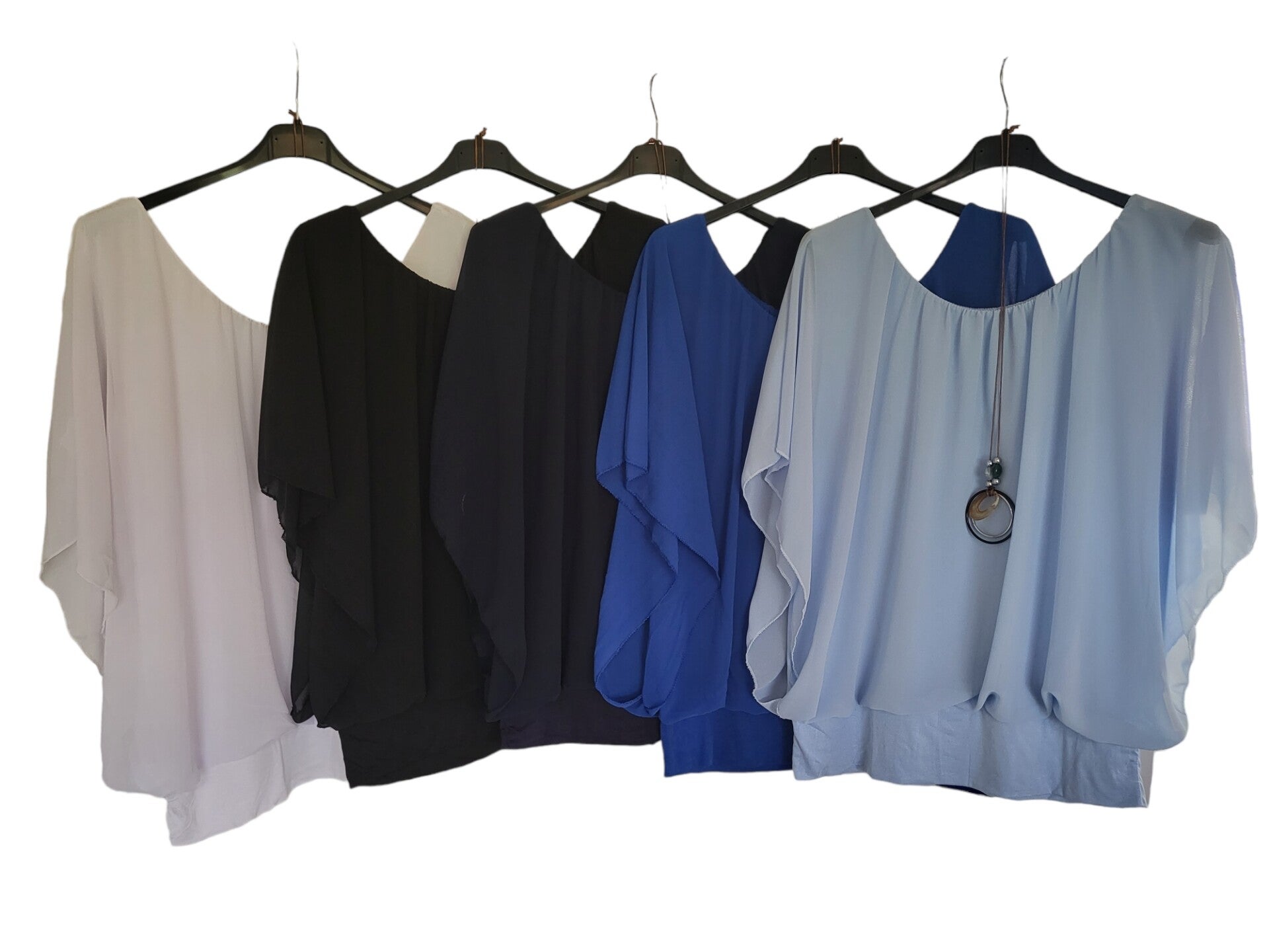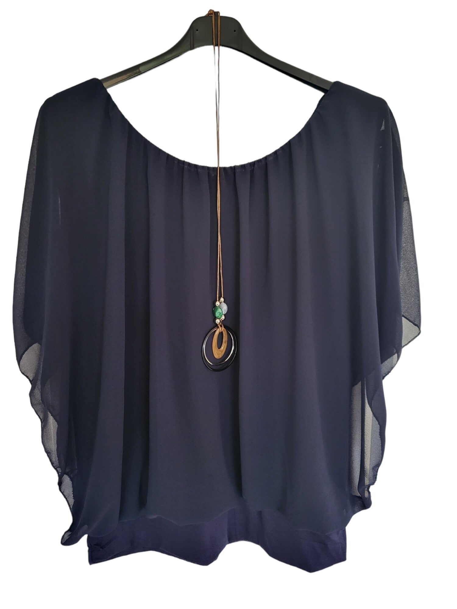 Fledermaus-Shirt mit Kette dunkelblau, Gr. 38 - 46, 1x verfügbar