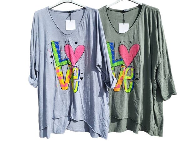 Langarmshirt khaki "LOVE", Gr. 44 - 50/52, 1x verfügbar