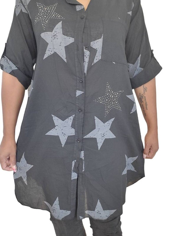 Bluse schwarz mit Sternen, Gr. 38 - 42, 1x verfügbar