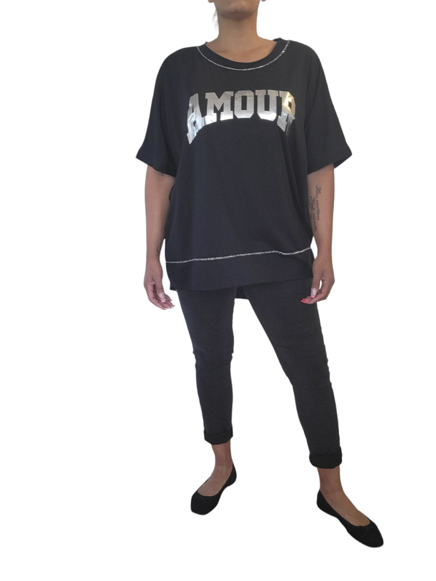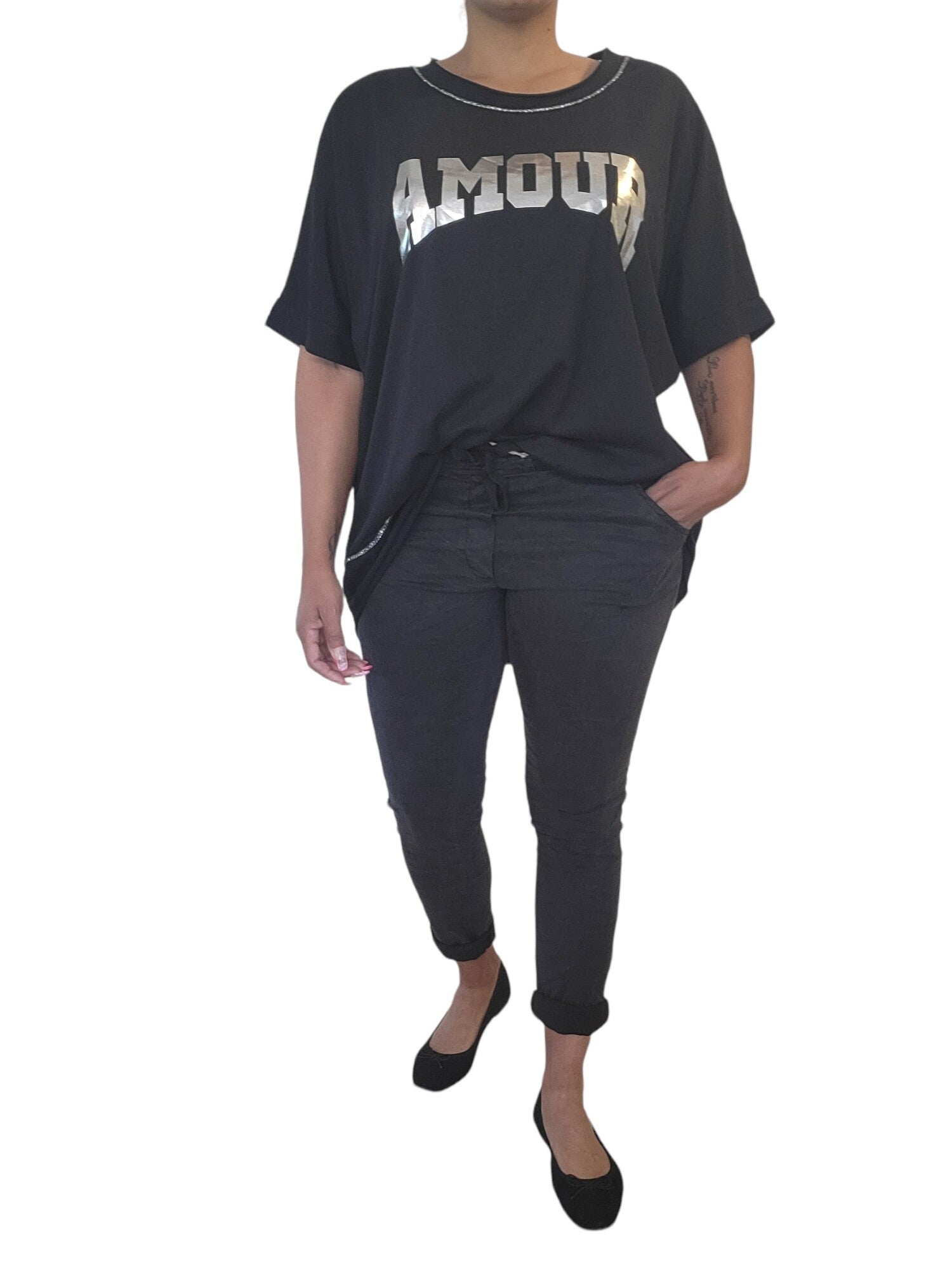 Tshirt schwarz "AMOUR", Gr. 38 - 42/44, 3x verfügbar