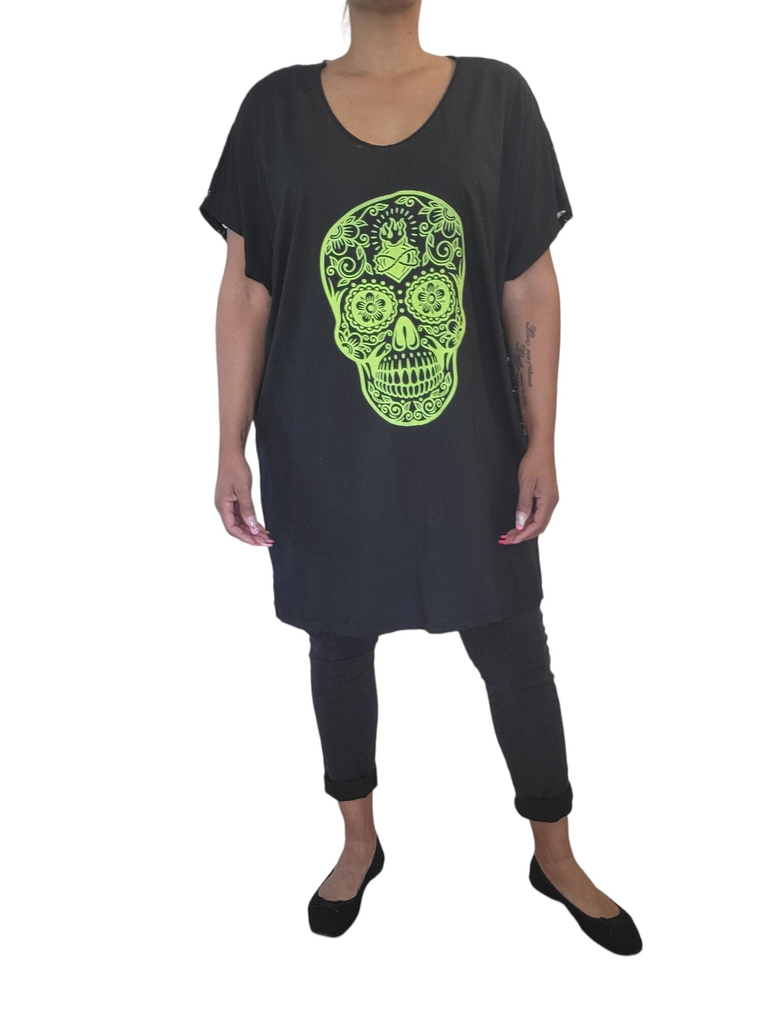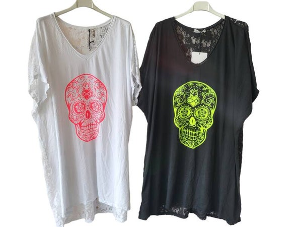 Tshirt weiss "Totenkopf" neonpink, Gr. 38 - 44, 2x verfügbar