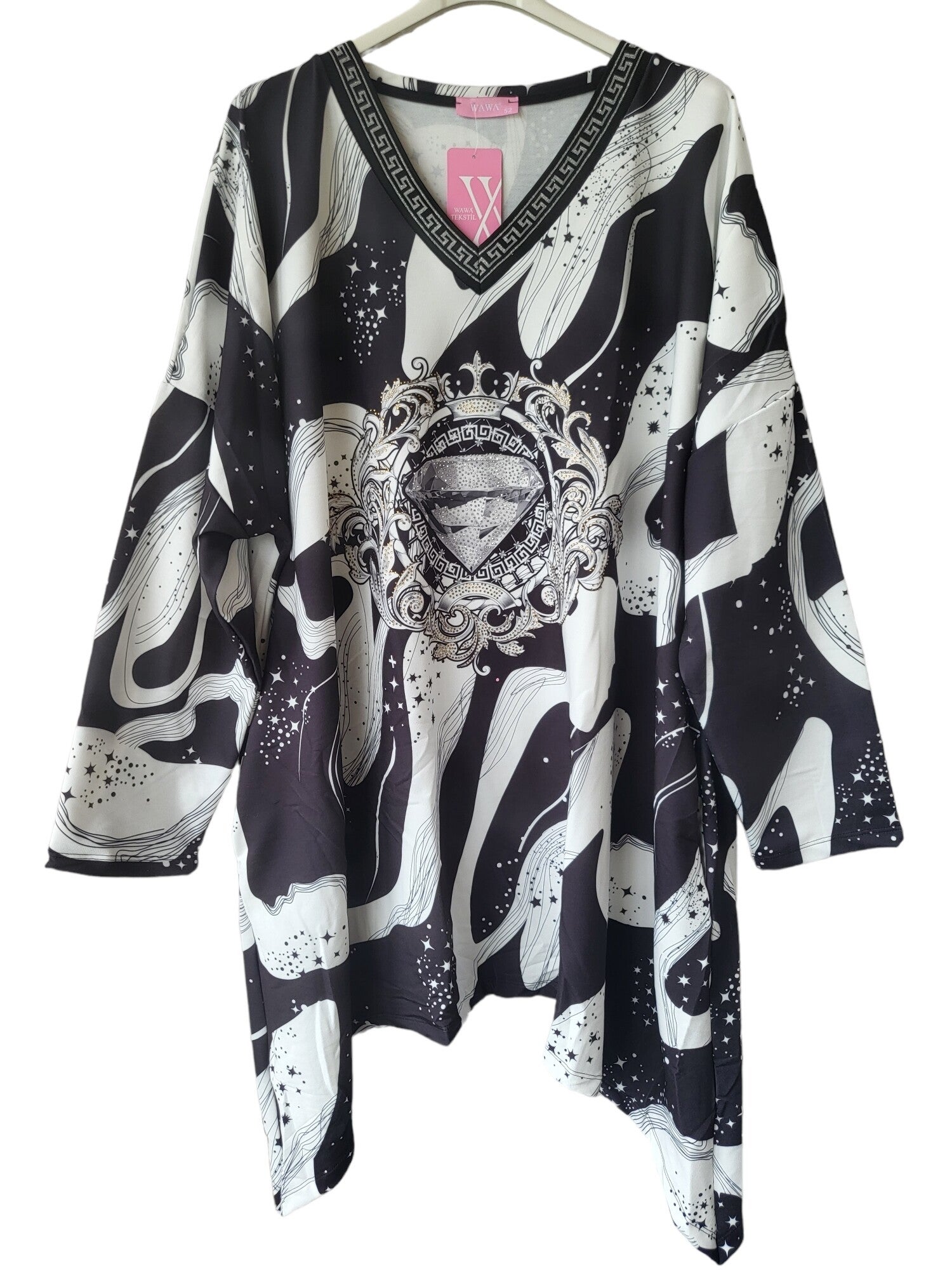 WAWA Longshirt schwarz/weiss "Diamond', Gr. 48, 1x verfügbar