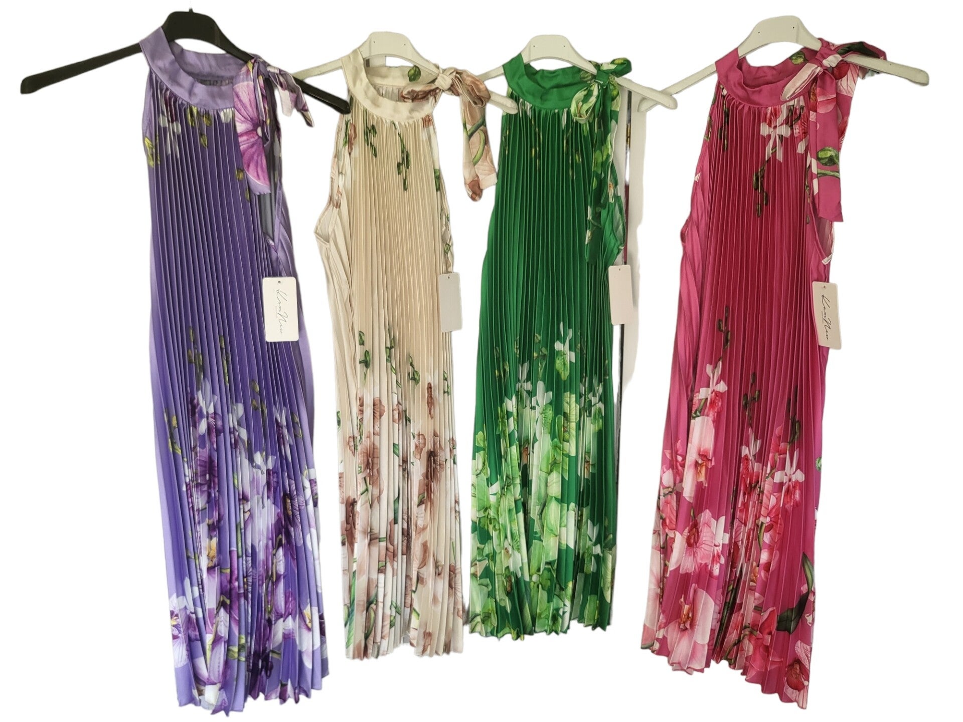 Plisseekleid beige mit Blumen, Gr. 36 - 40, 1x verfügbar