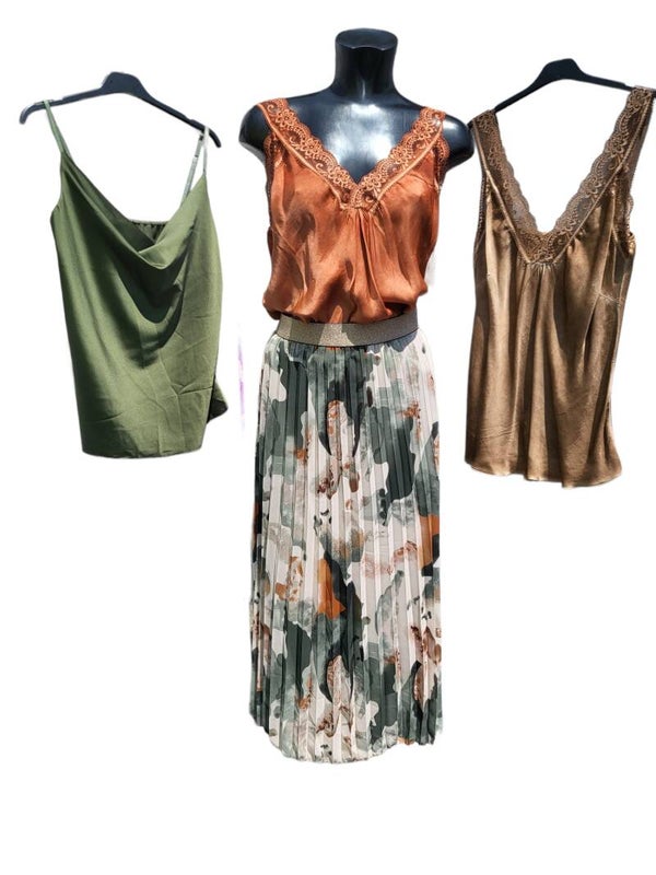 Plisseejupe beige/dunkelgrün, Gr. 34 - 38, 1x verfügbar