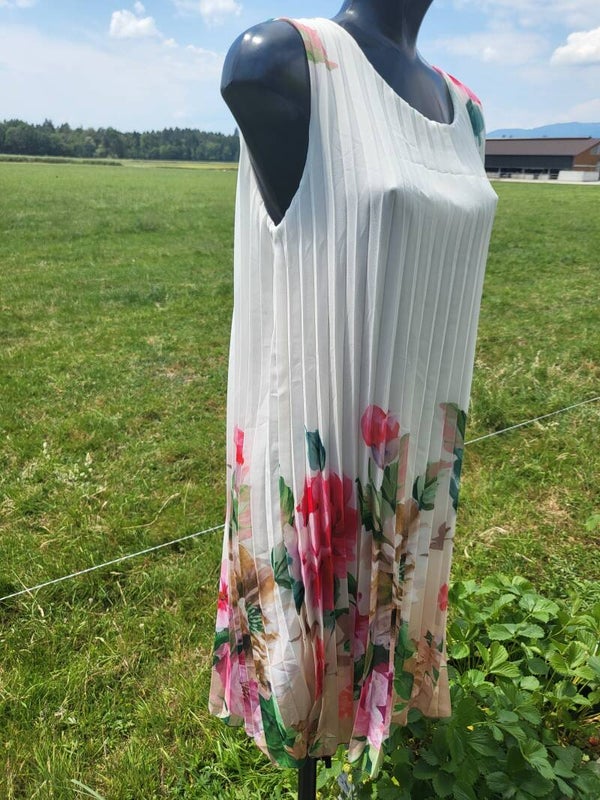 Plisseekleid weiss mit Blumen, Gr. 36 - 40, 1x verfügbar