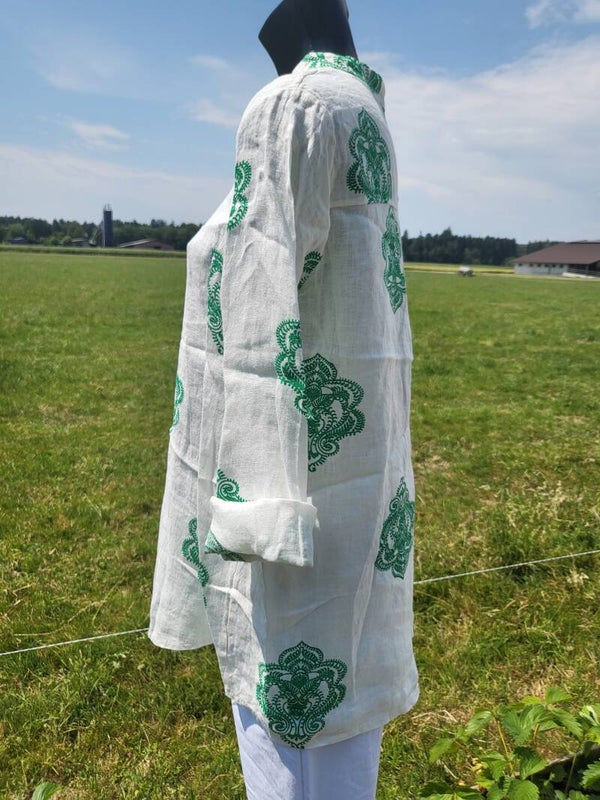 Bluse weiss mit Muster grün, Gr. 38/40, 1x verfügbar