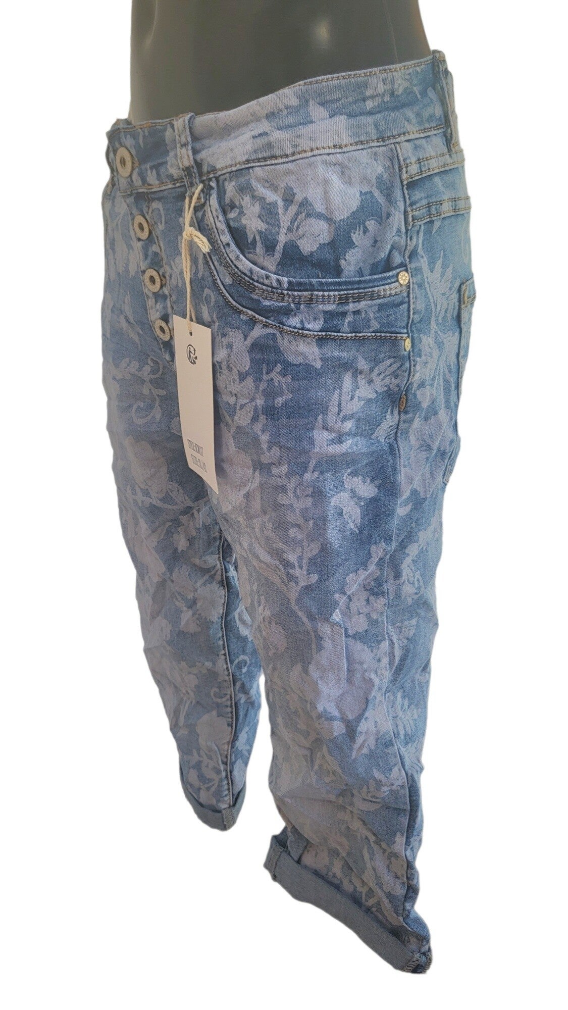 KARO STAR Capri - Stretchjeans "Flowers", Gr. 42 - 1x verfügbar (NR. KC8117)