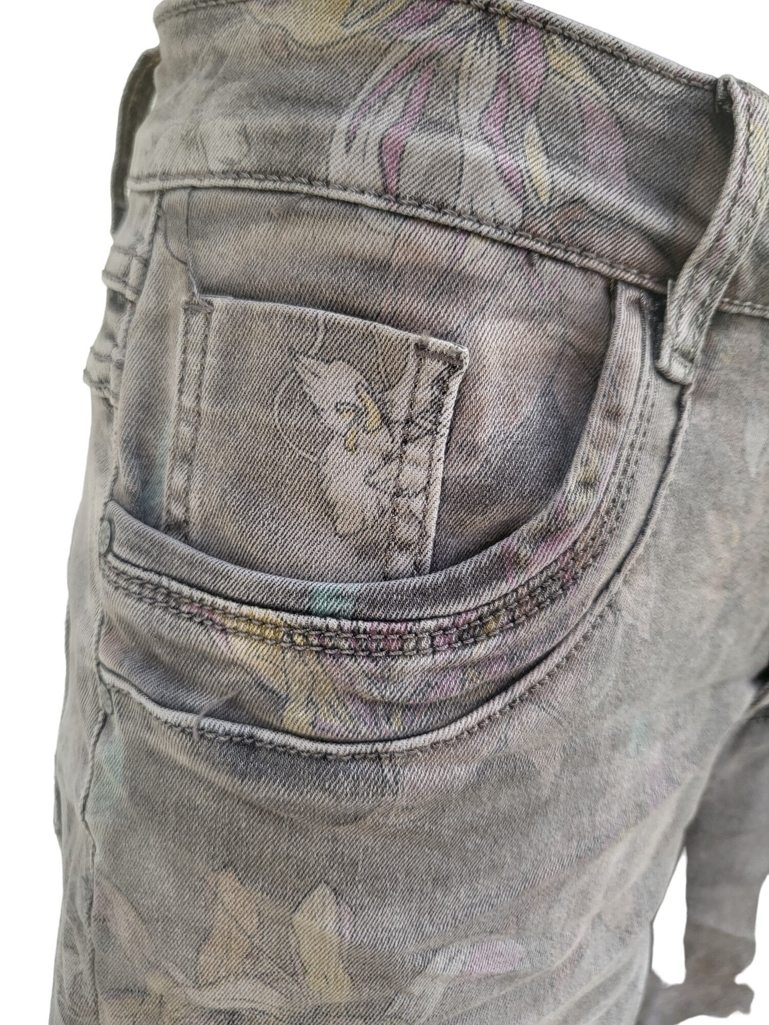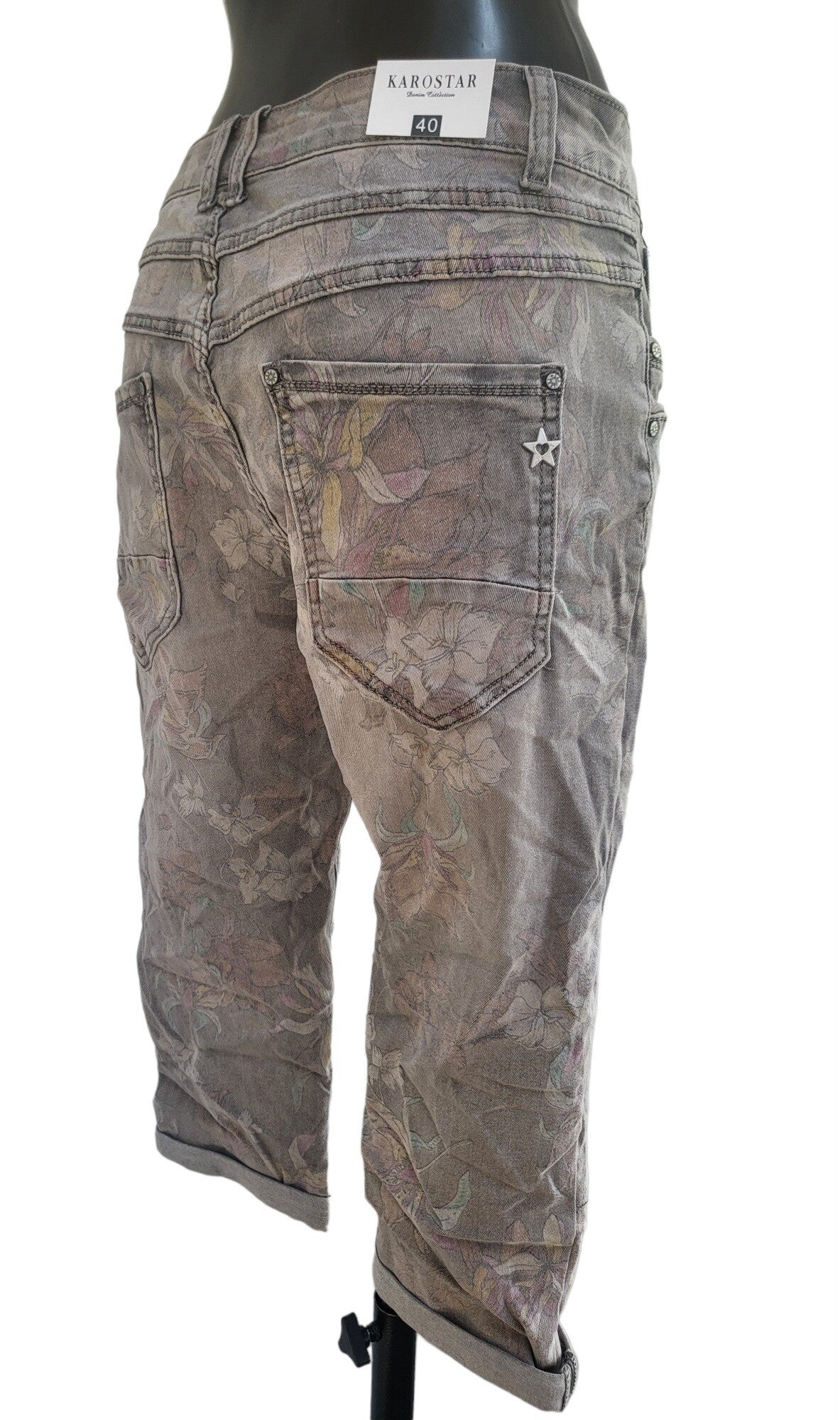 KAROSTAR Capri - Stretchjeans grau "bunte Blume", Gr. 40 - 1x verfügbar (NR. KC8069)