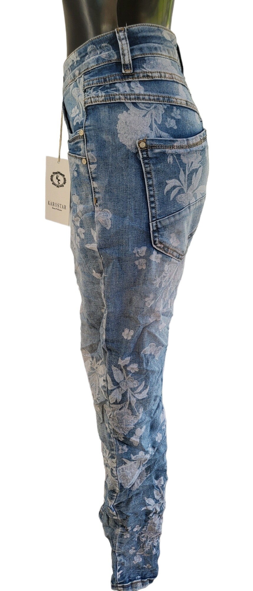 KAROSTAR Stretchjeans lang "Flowers", Gr. XL (44) - 1x verfügbar (NR. K8013)