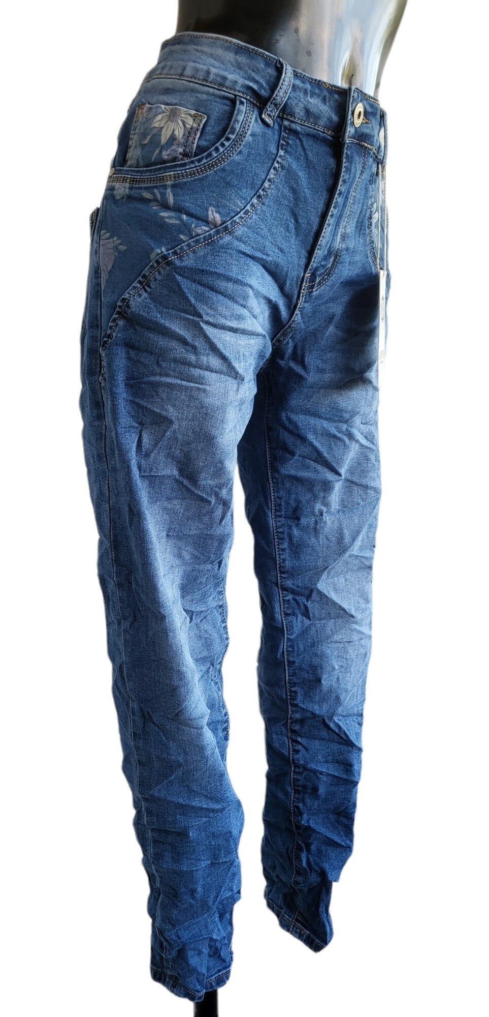 KAROSTAR Stretchjeans lang "BLUE & FLOWERS", Gr. L (42) - 1x verfügbar (NR. K8016)