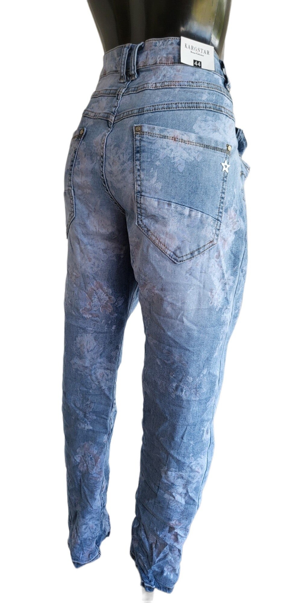 KARO STAR Stretchjeans lang "Blue & Flowers", Gr. 2XL (46/48) - 1x verfügbar (NR. K8032)