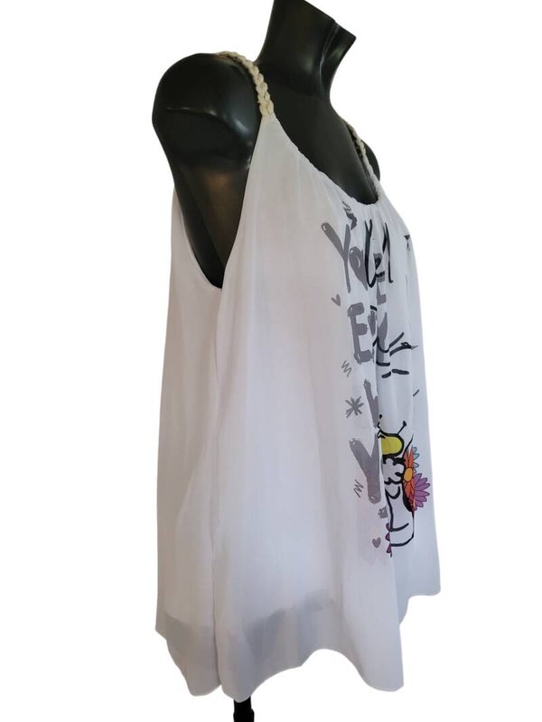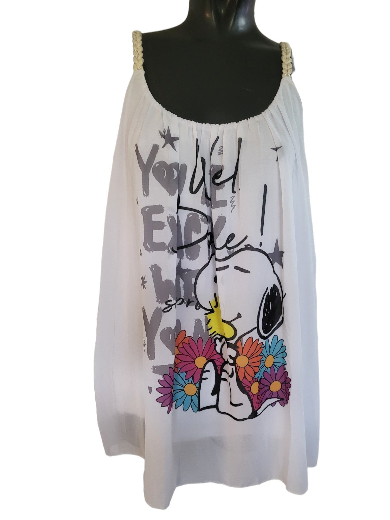 Trägershirt weiss "Snoopy mit Blumen", Gr. 38 - 42/44, 1x verfügbar