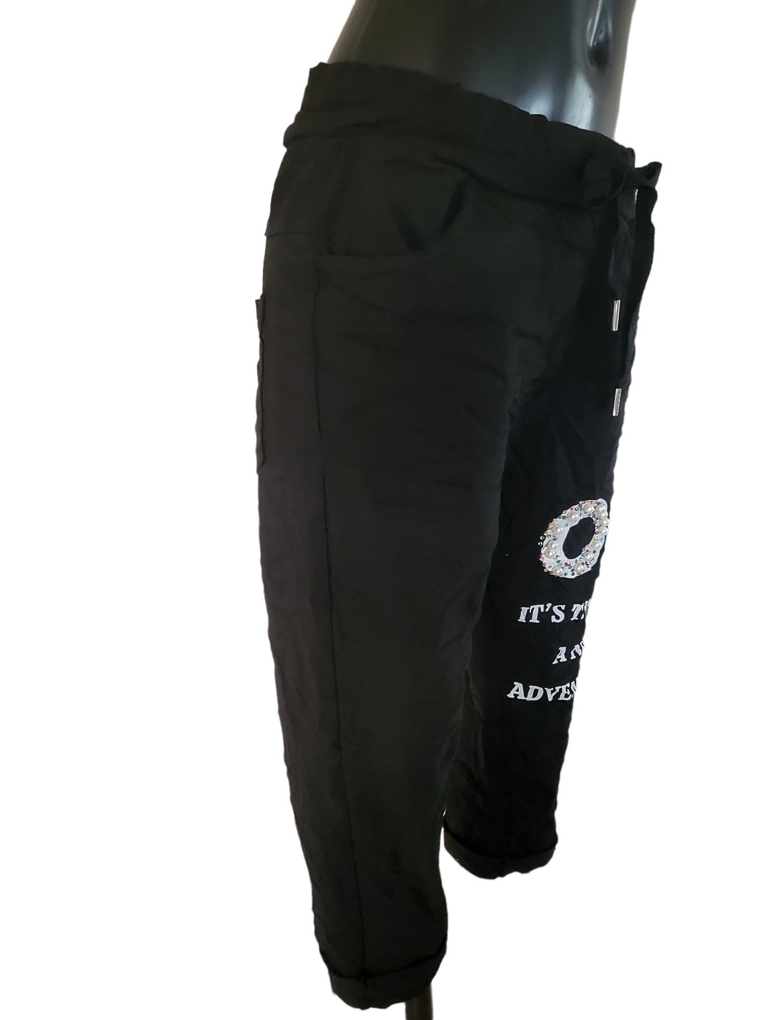 Capri-Stretchhose schwarz "OK", Gr. 38/40, 1x verfügbar