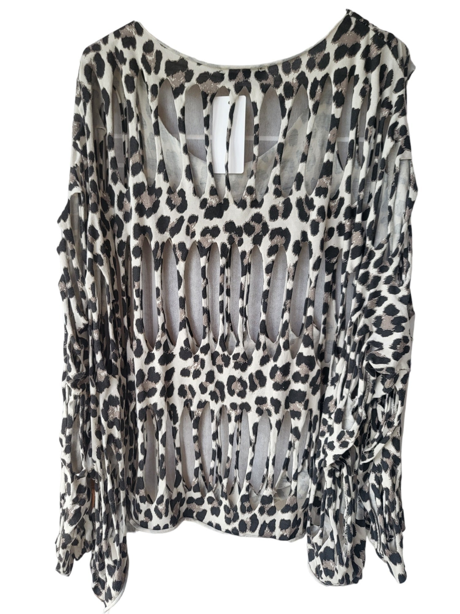 Schlitzpullover weiss-leo, Gr. 38 - 42 - 1x verfügbar