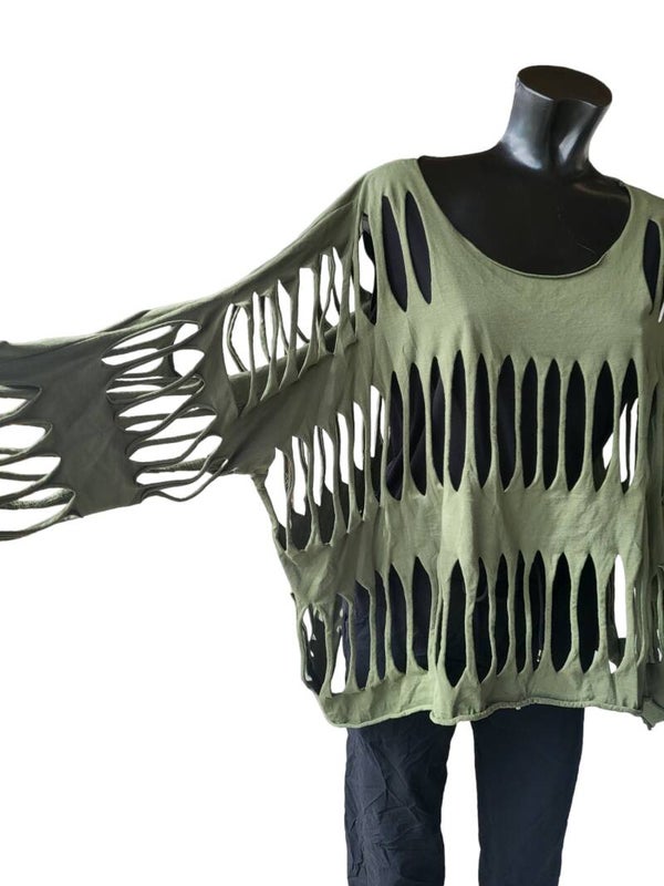 Schlitzpullover khaki, Gr. 38 - 42 - 1x verfügbar