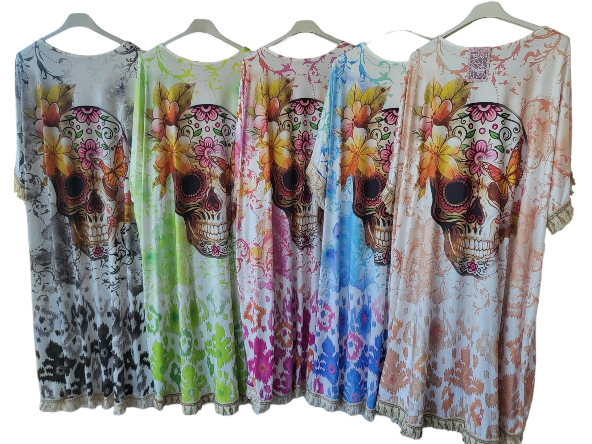 Cardigan lachs/beige "skull", Gr. onesize bis 44/46, 2x verfügbar