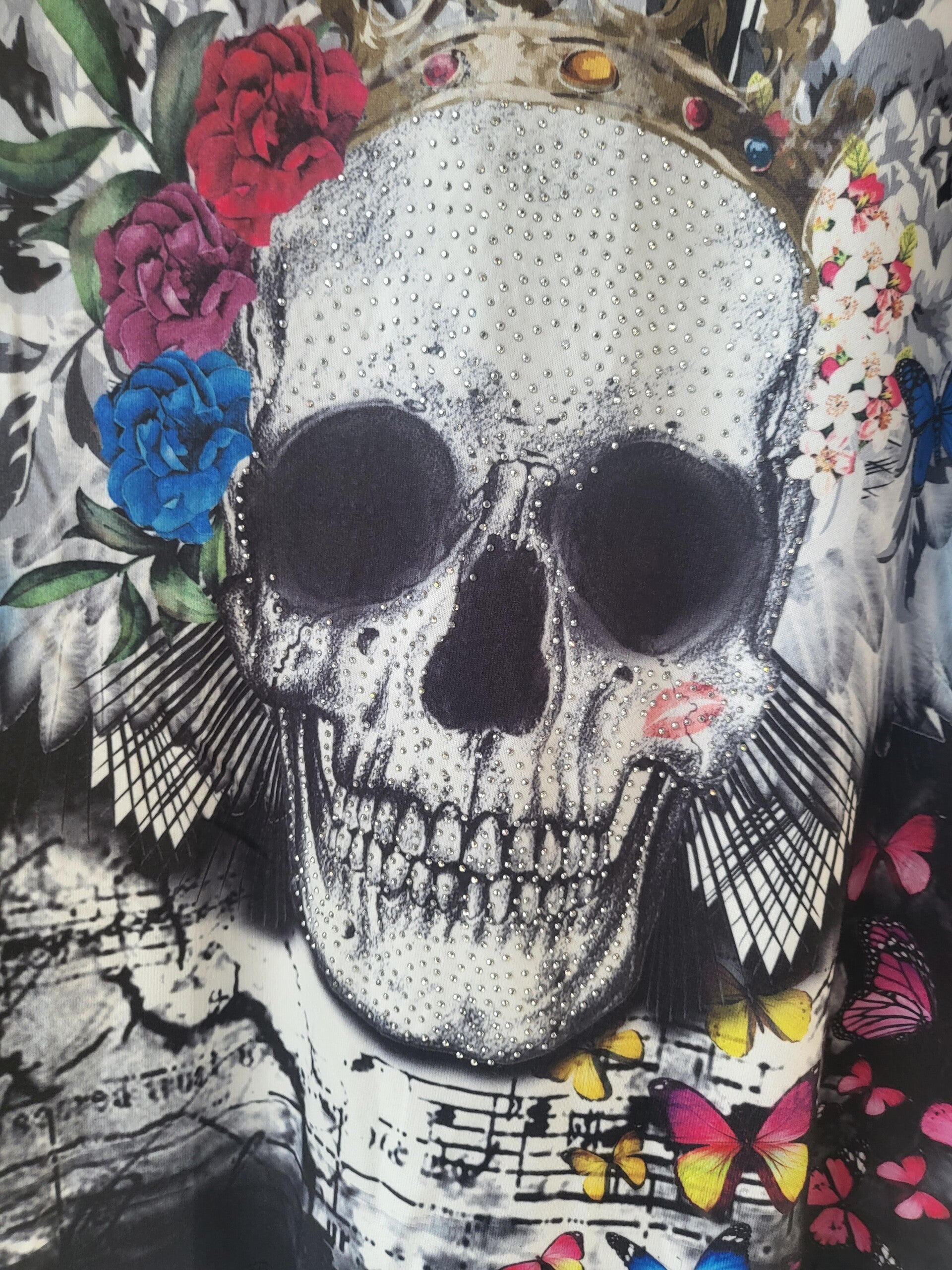 Langarmshirt "Skull mit Schmetterling", Gr. 46 - 50, 1x verfügbar