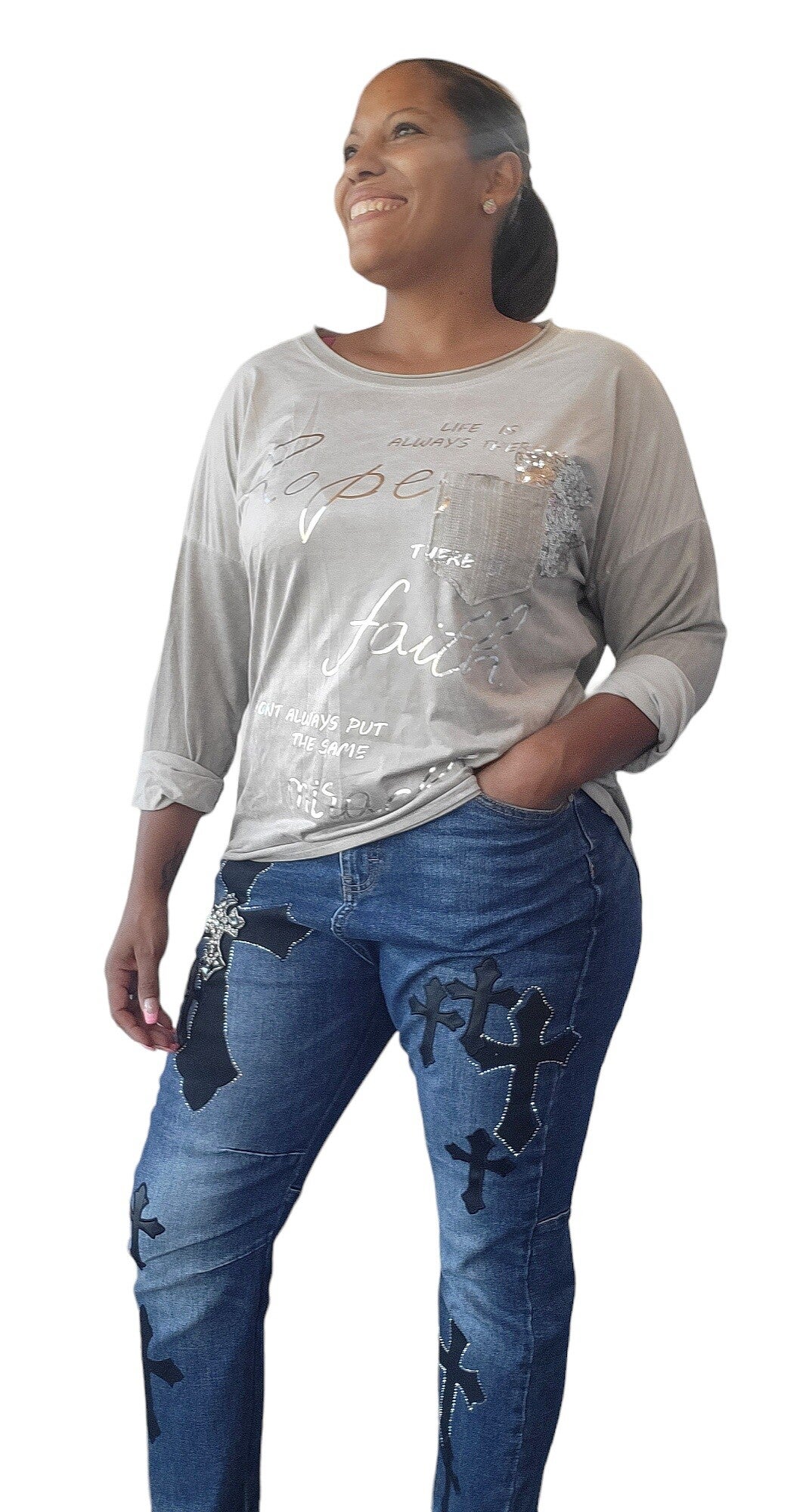 Jeans mit "Kreuz", Gr. XL (44/46) - 1x verfügbar