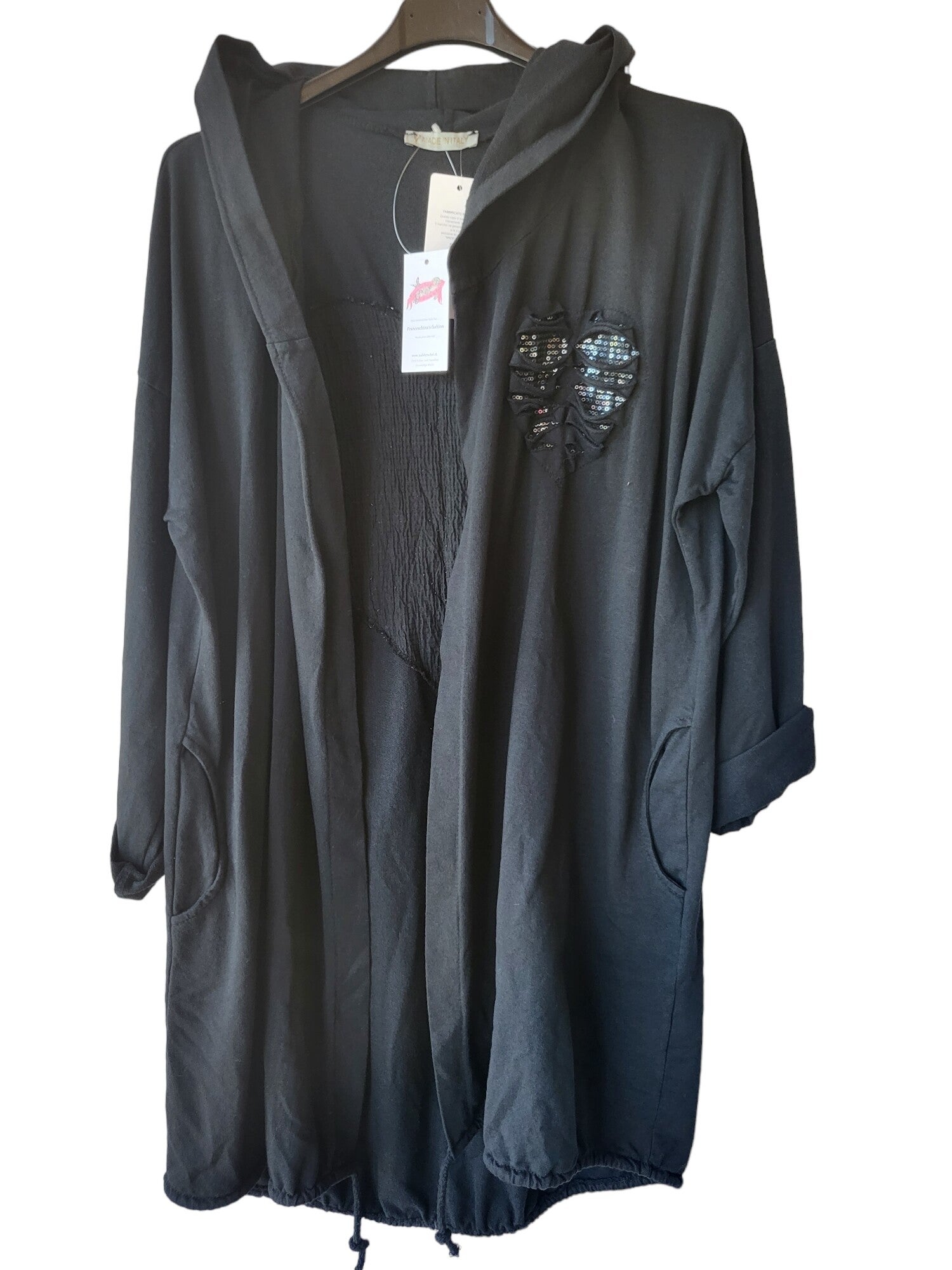 Cardigan schwarz mit Pailletten Herz, Gr. One size (bis 44), 3x verfügbar