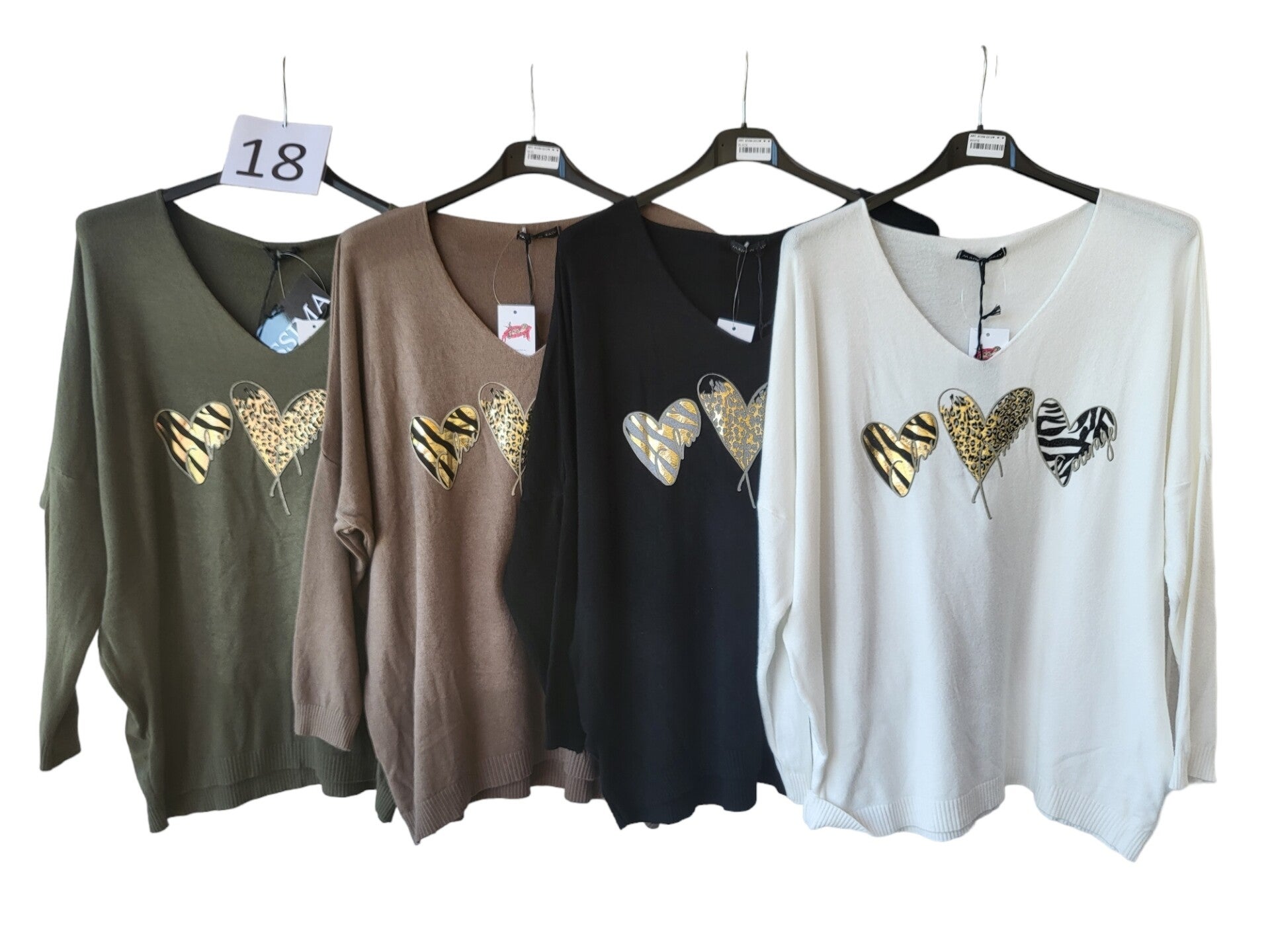 Pullover schwarz "3 Herzen", Gr. 38 - 42, 1x verfügbar