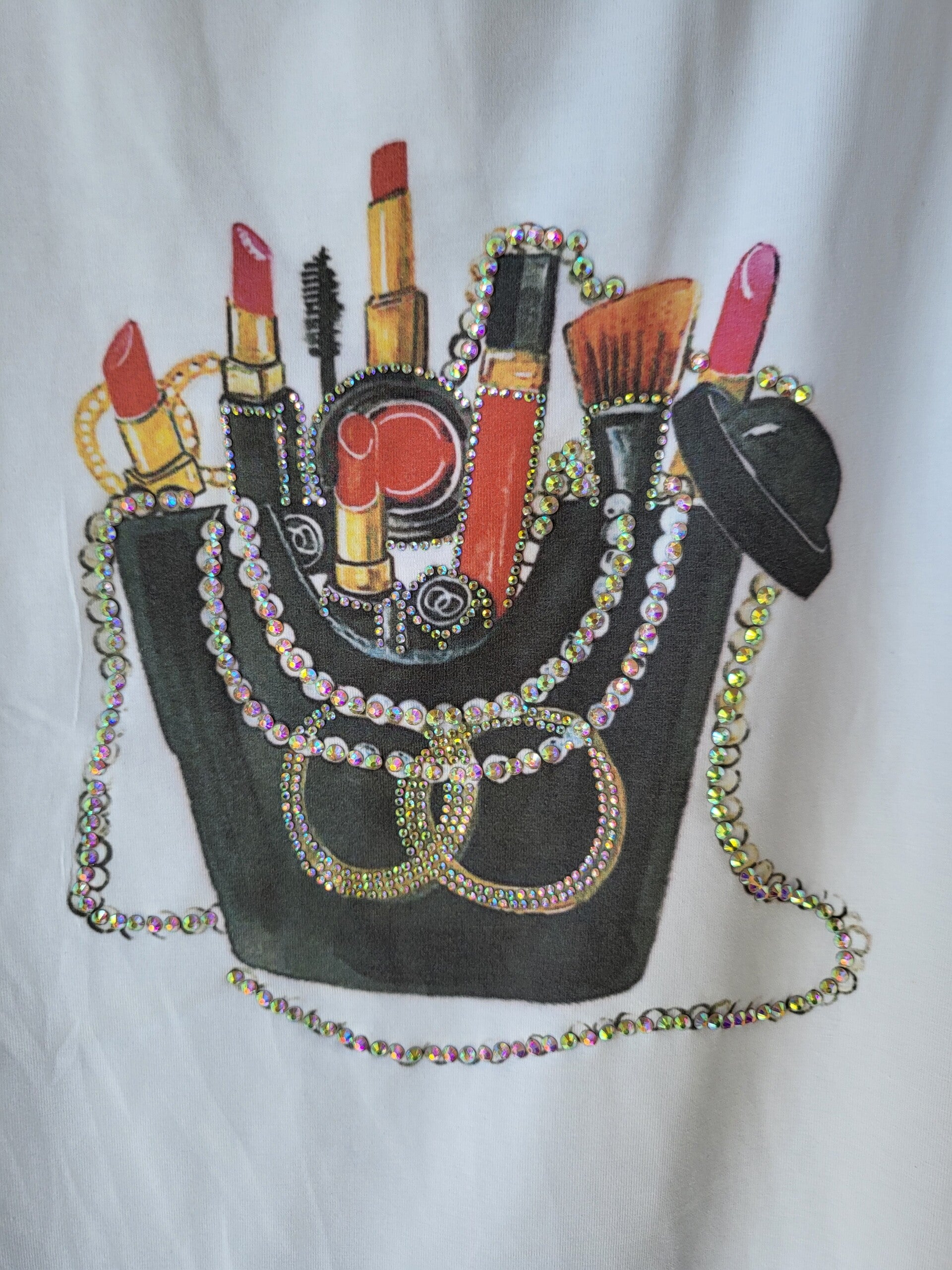 Tshirt weiss mit bling bling "Kosmetiktasche", Gr. 38 - 42, 1x verfügbar