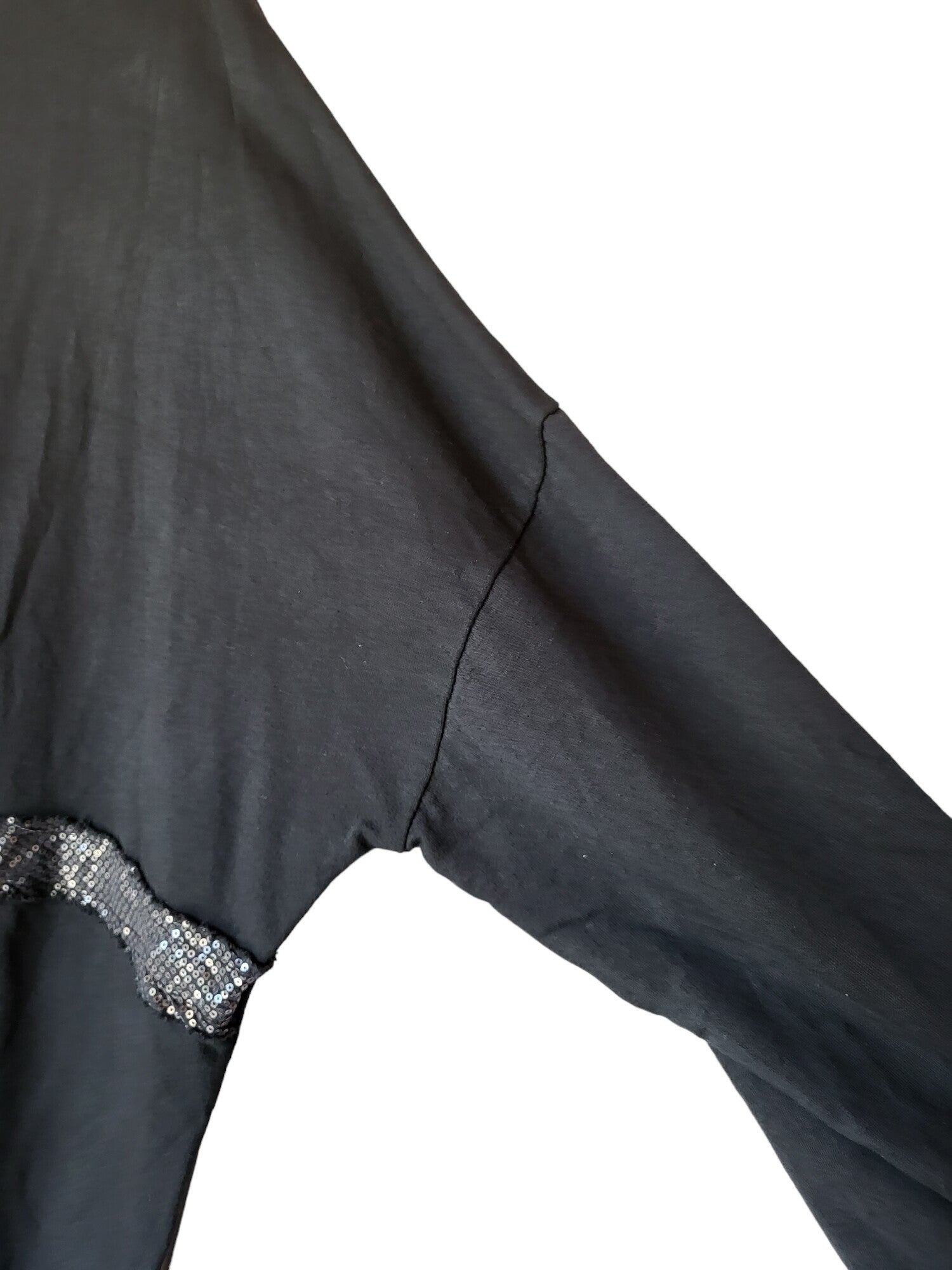 Sweatshirt schwarz mit Blume & Pailletten, Gr. 46 - 50, 2x verfügbar