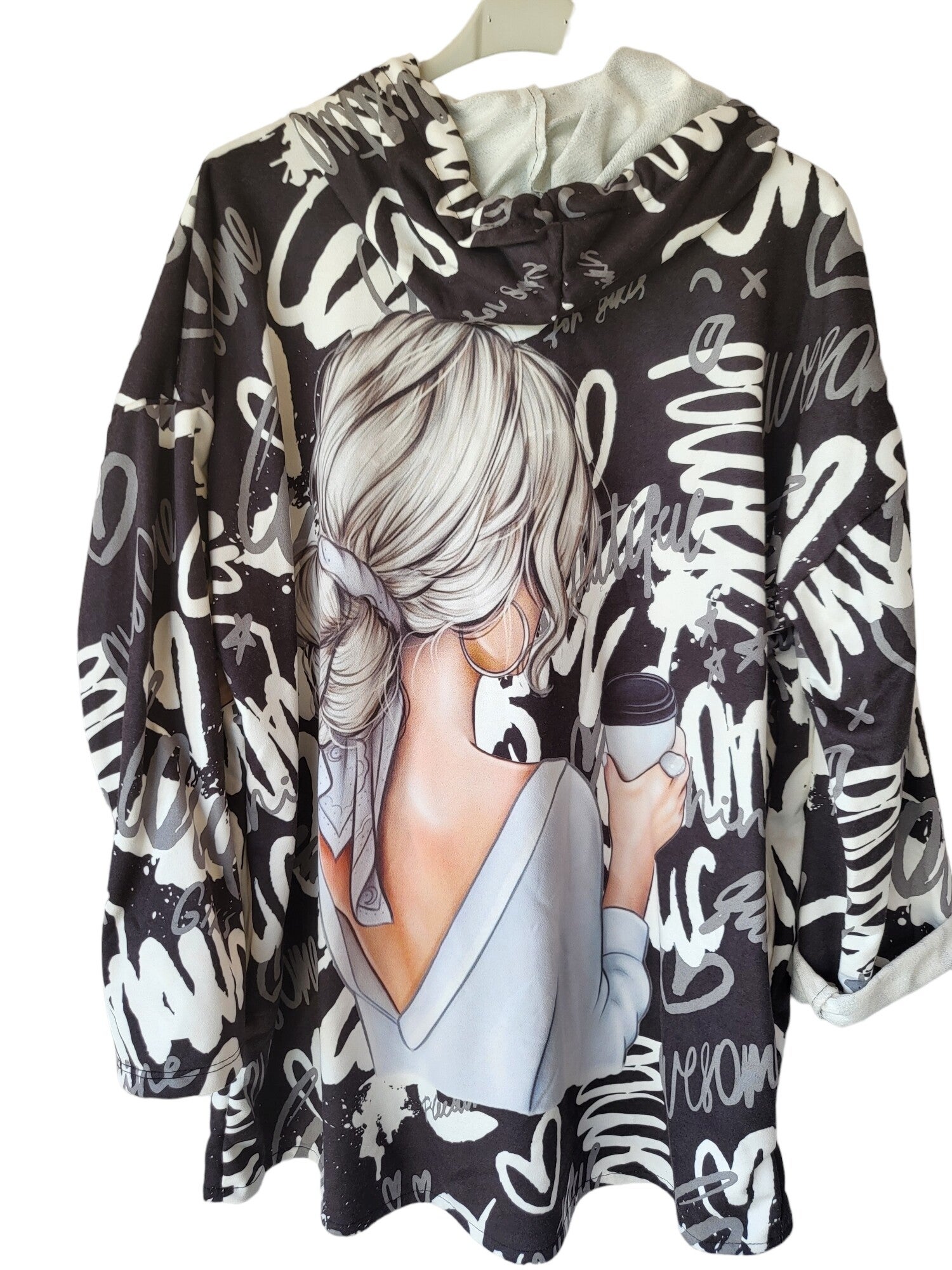 Jäggli mit Kapuze "Frau mit Kaffee", Gr. 38 - 44, 1x verfügbar