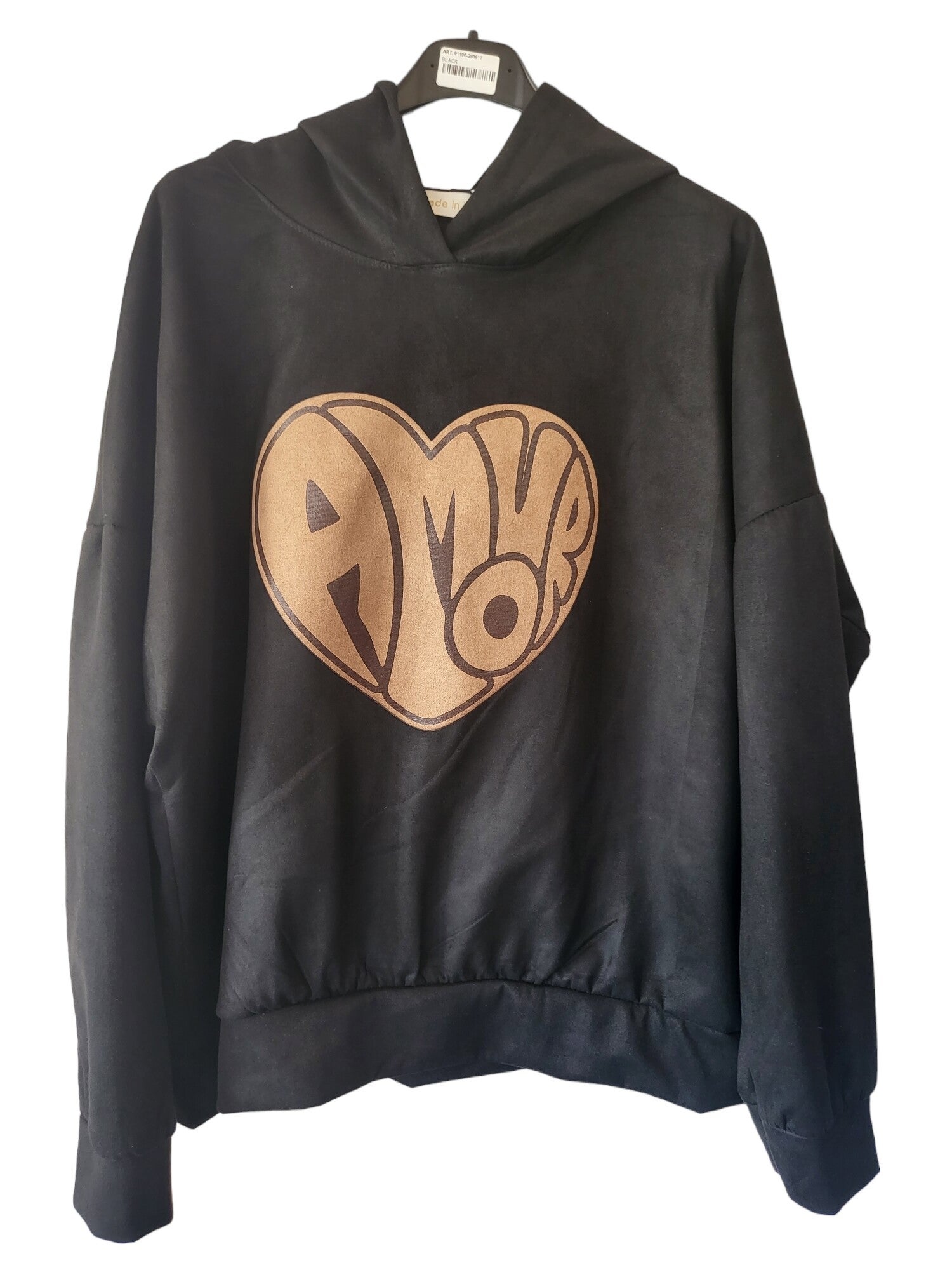 Kapuzenpullover schwarz "AMOUR", Gr. 38 - 42, 1x verfügbar