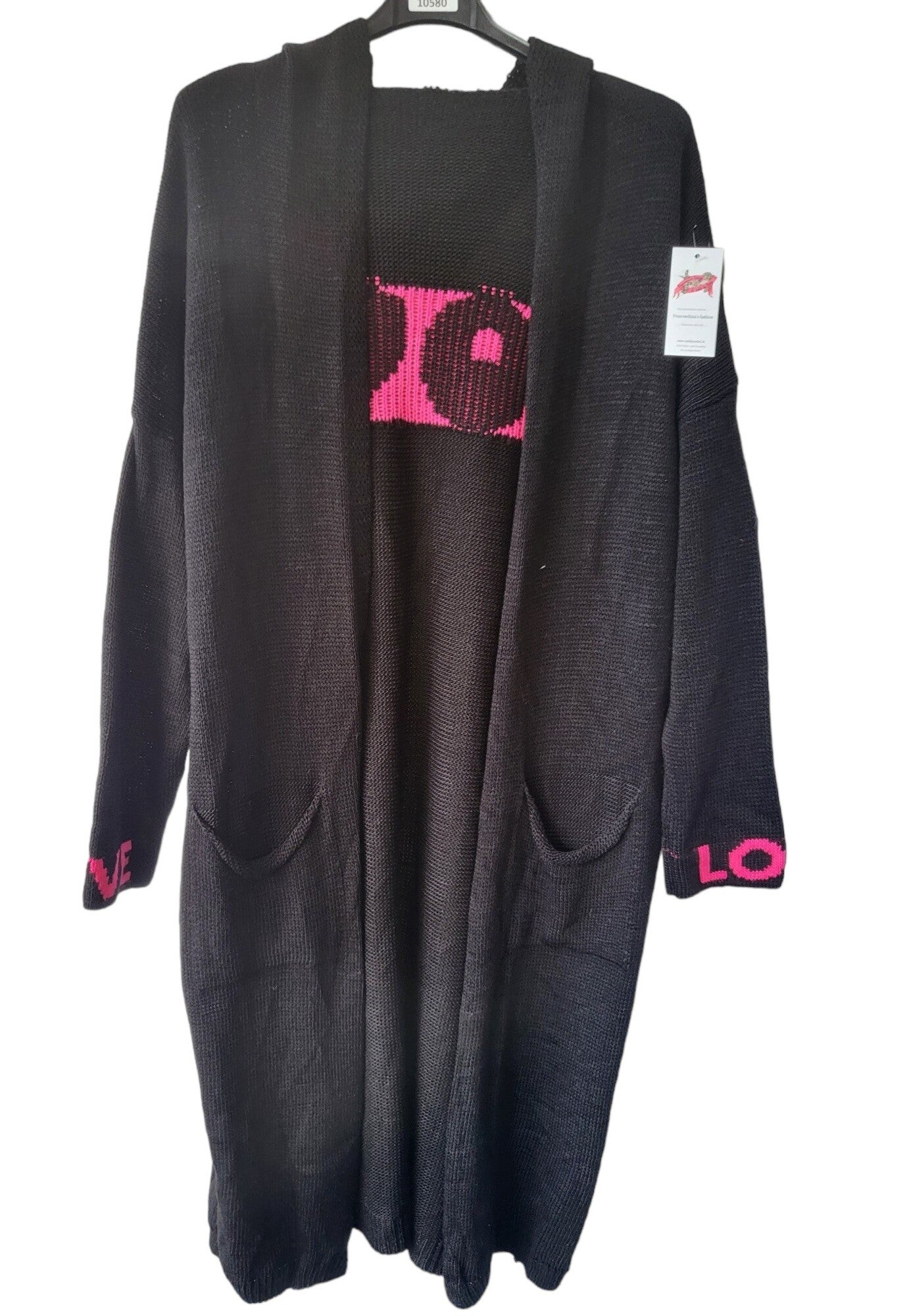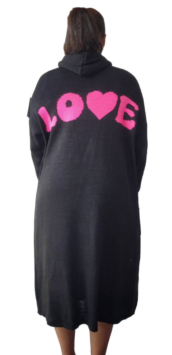 Cardigan mit Kapuze schwarz/pink "LOVE!" - 1x verfügbar
