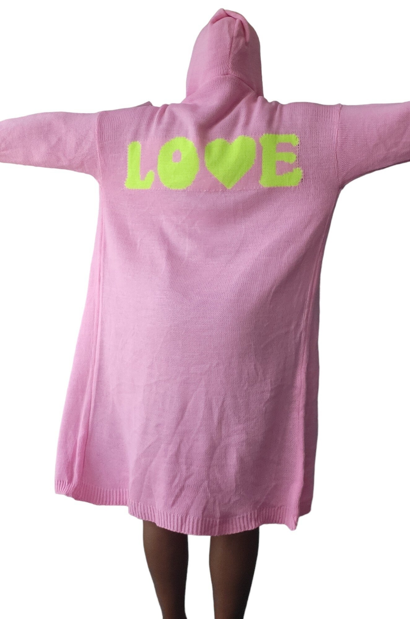 Cardigan mit Kapuze rosa/gelb "LOVE!" - 1x verfügbar