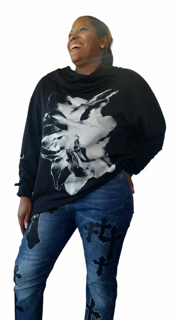 Pullover schwarz "Blume", Gr. 40 - 44, 1x verfügbar