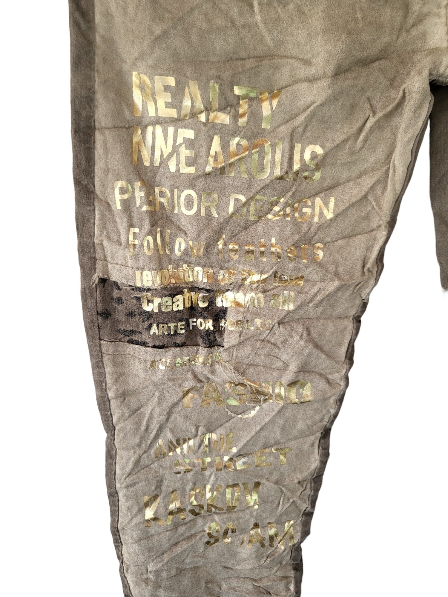 Stretchhose mud "Schriftzug gold" ISSIMA, Gr. 38 - 42, 1x verfügbar
