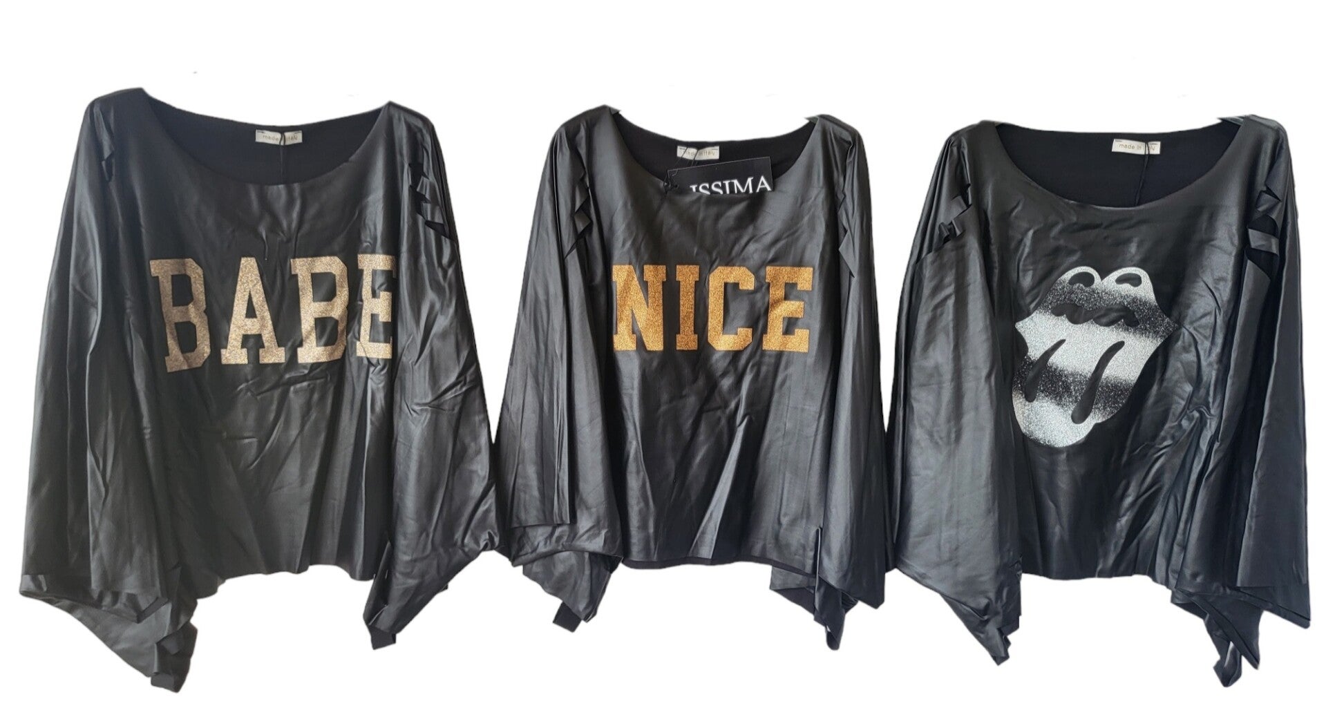 Kunstleder-Shirt schwarz "NICE" (ISSIMA), Gr. Onesize (bis 44/46), 2x verfügbar