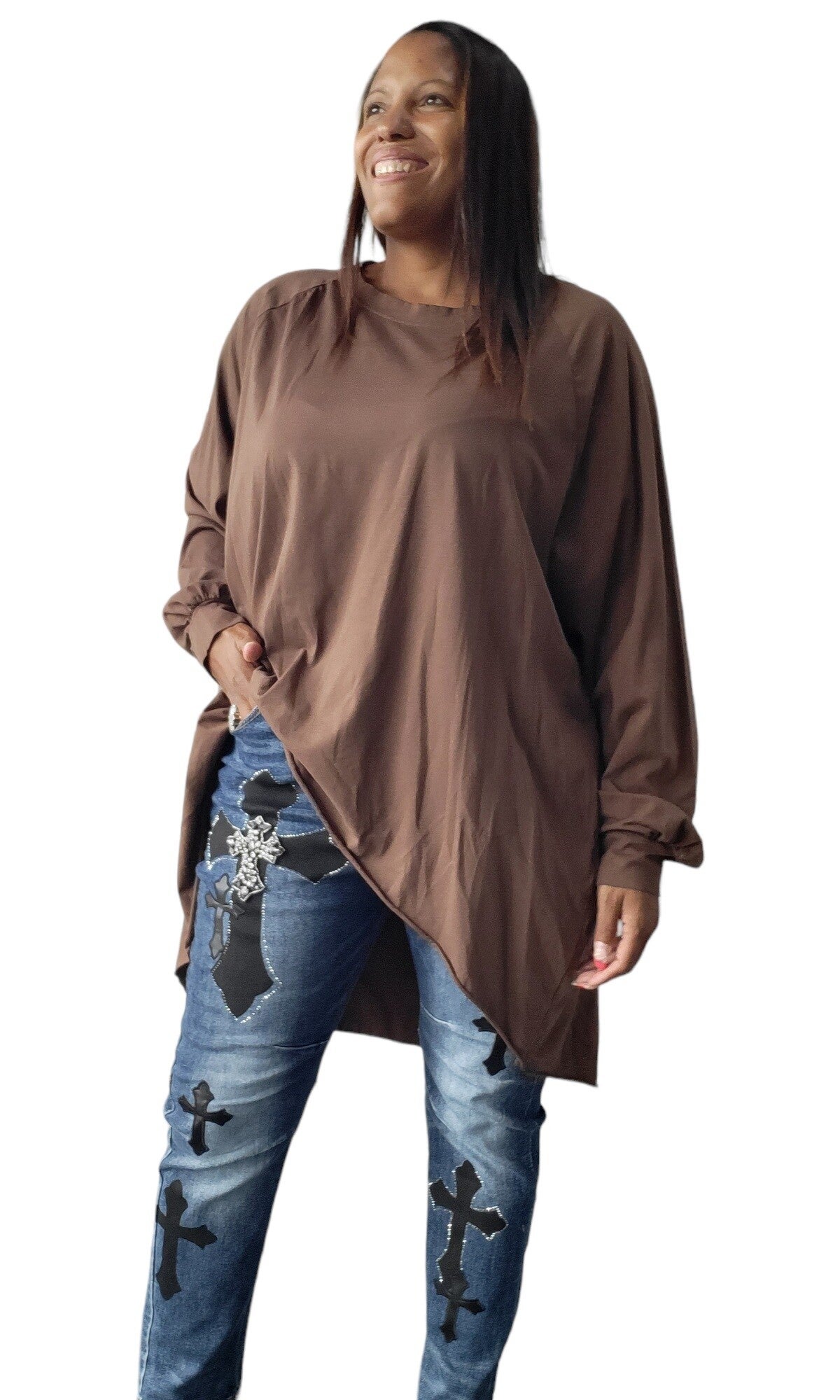 Shirt vokuhila cammel "STYLE" (ISSIMA), Gr. 40 - 44/46, 1x verfügbar