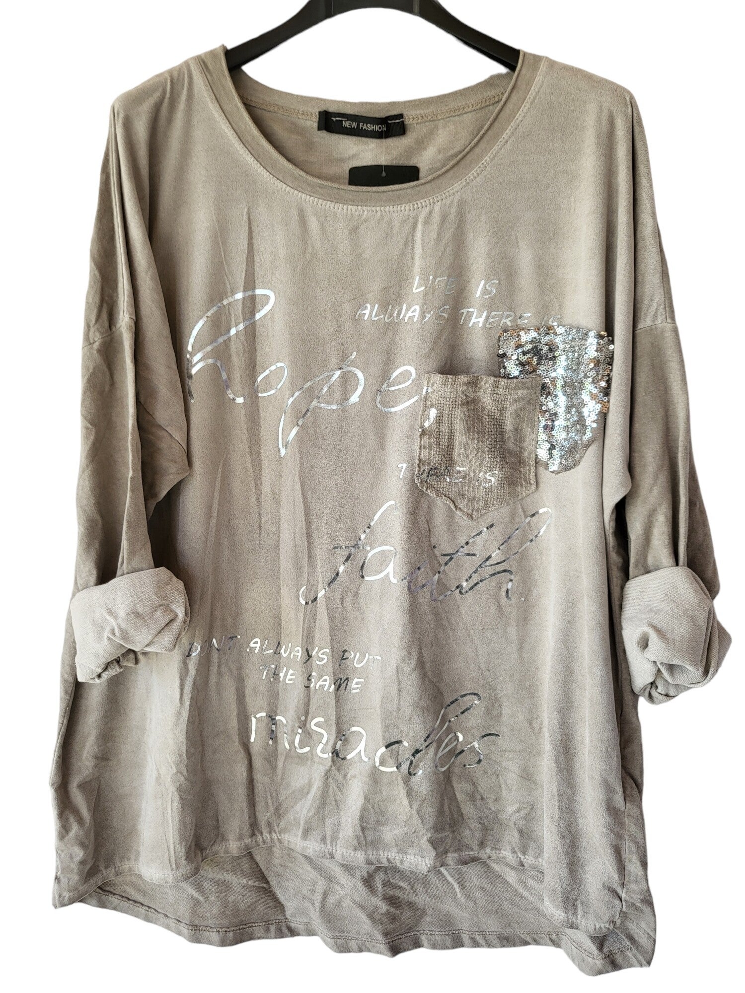 Pullover beige mit Schriftzug "HOPE", Gr. 38 - 42, 1x verfügbar
