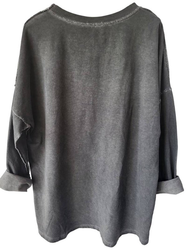 Pullover anthrazit "silber Schrift", Gr. 38 - 42, 1x verfügbar