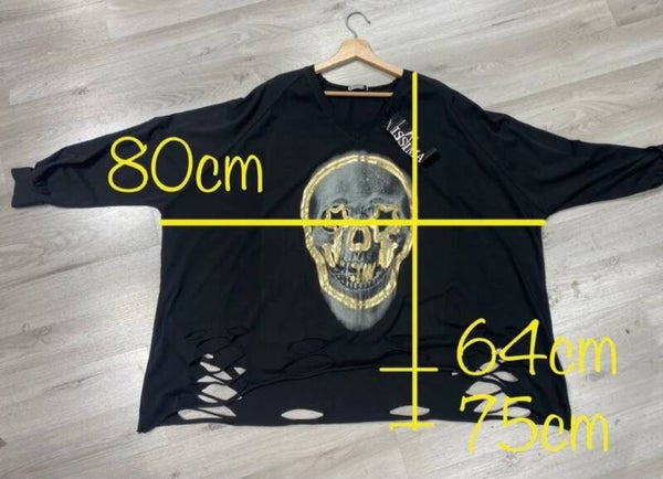 Langarmshirt beige "Skull", Gr. 42 - 46, 2x verfügbar