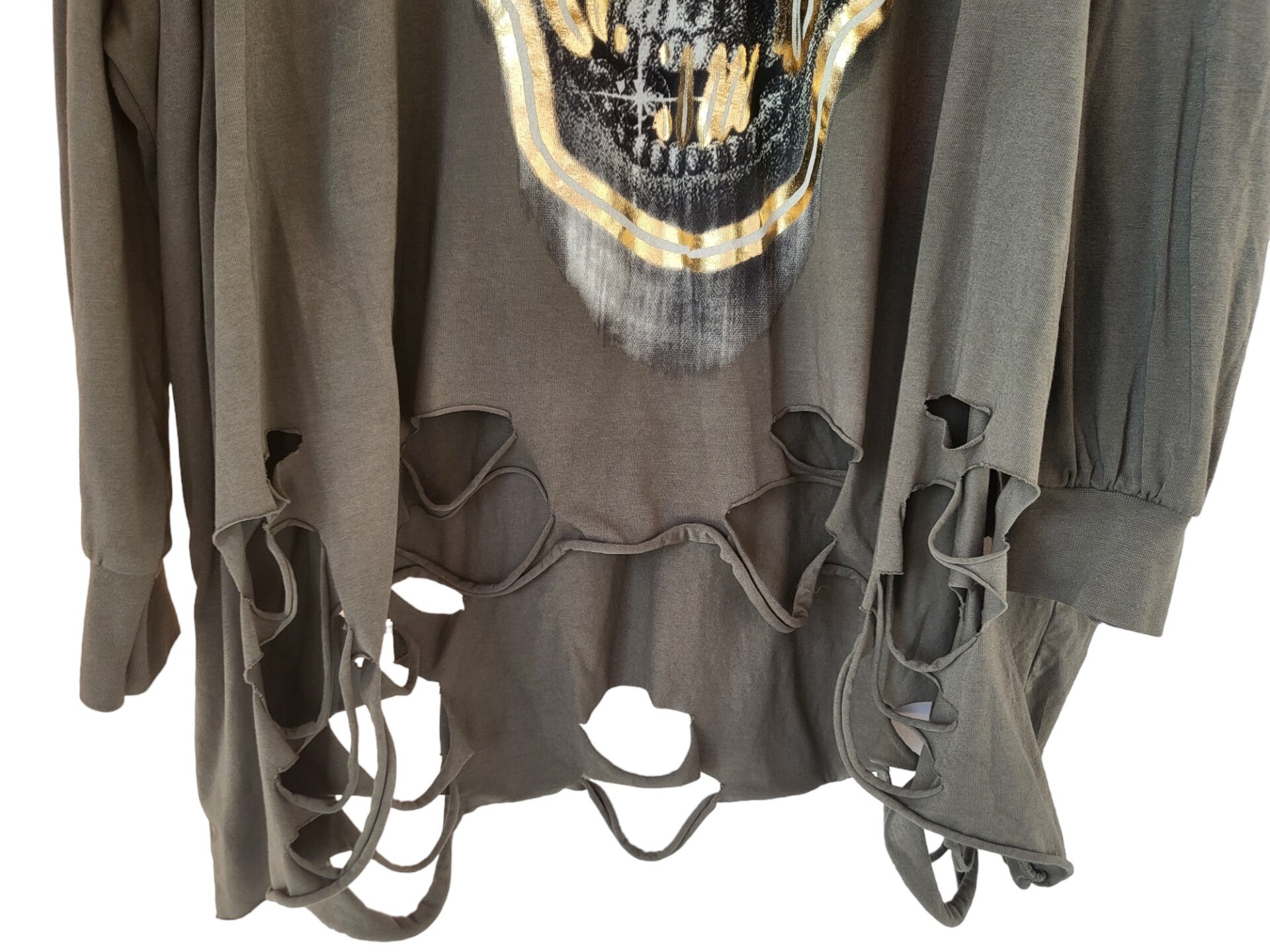 Langarmshirt militär grün "Skull", Gr. 42 - 46, 2x verfügbar