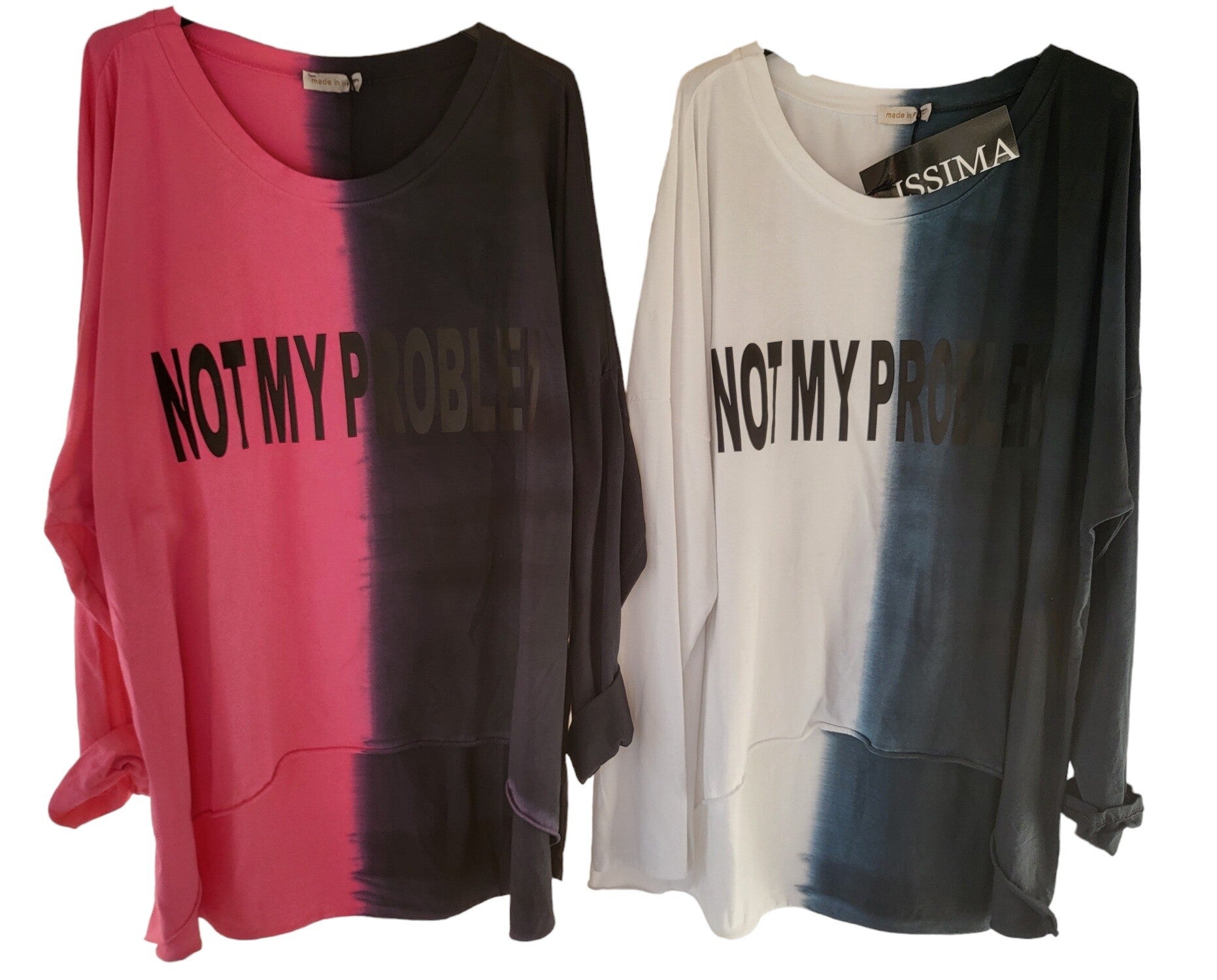 Langarmshirt weiss/schwarz "Not my problem", Gr. 42 - 44/46, 1x verfügbar
