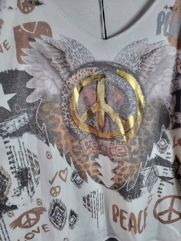 Pullover weiss "Peace", Gr. 38 - 42, 1x verfügbar