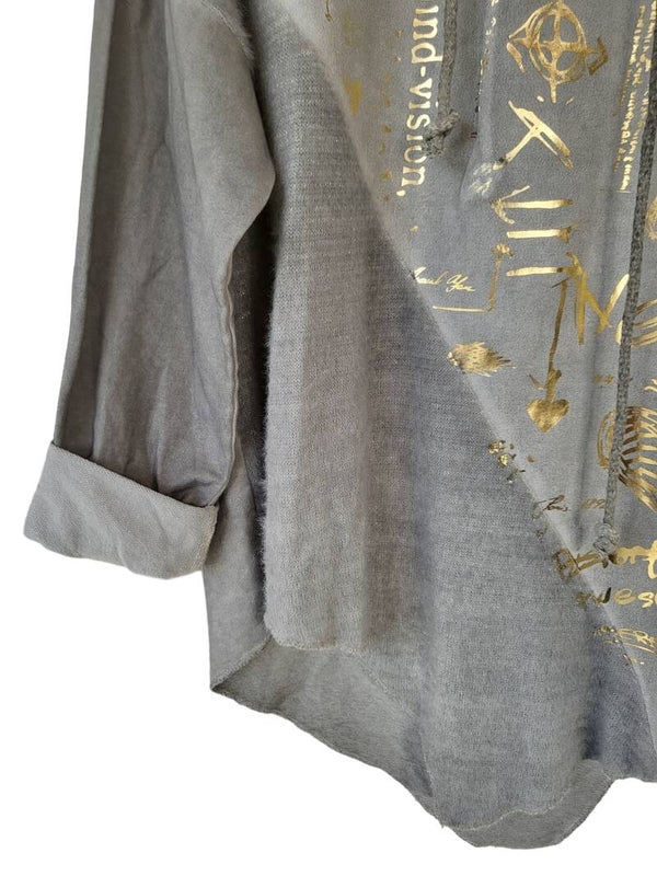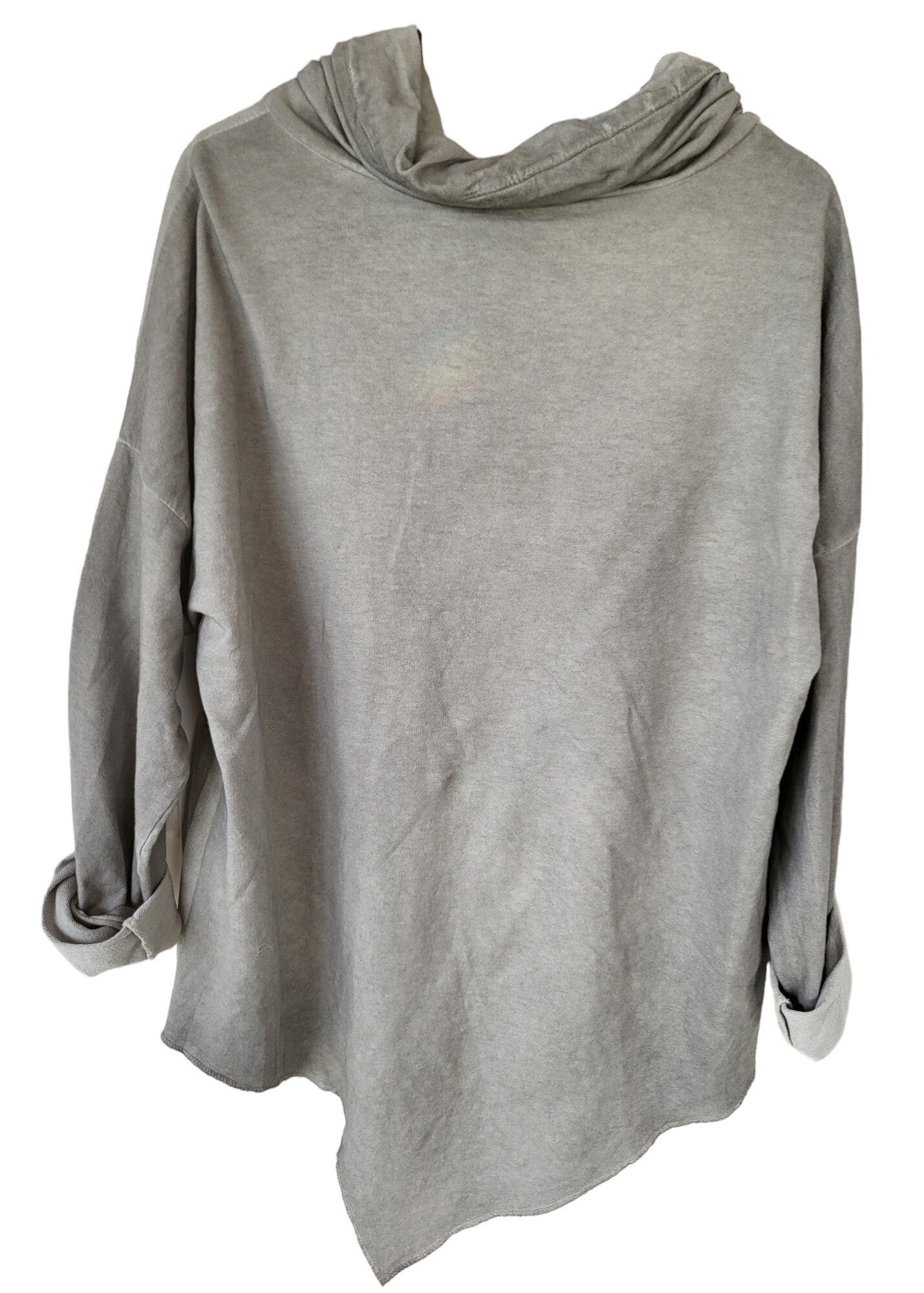 Pullover hellgrau asymetrisch "LOVE", Gr. 38 - 42/44