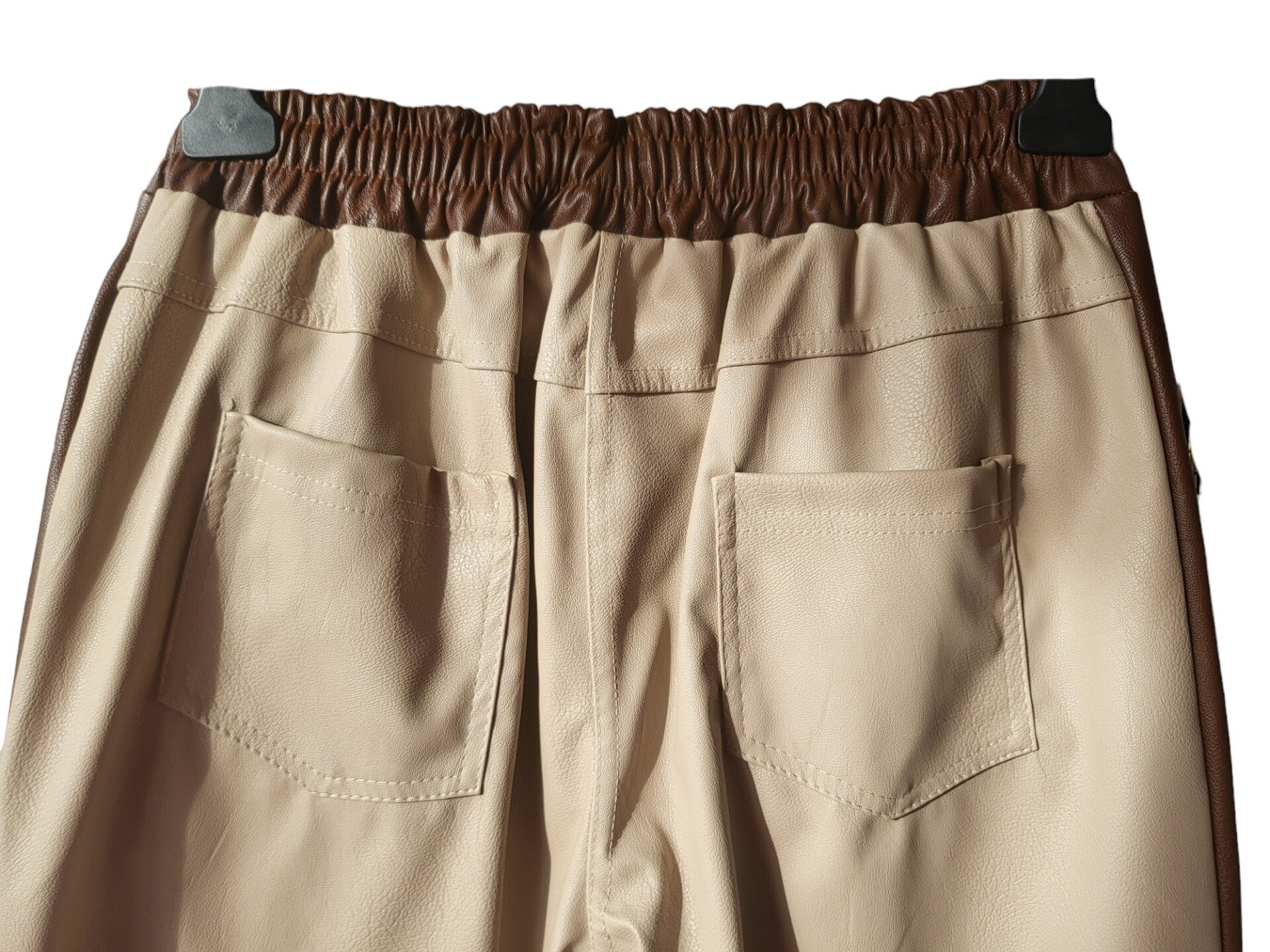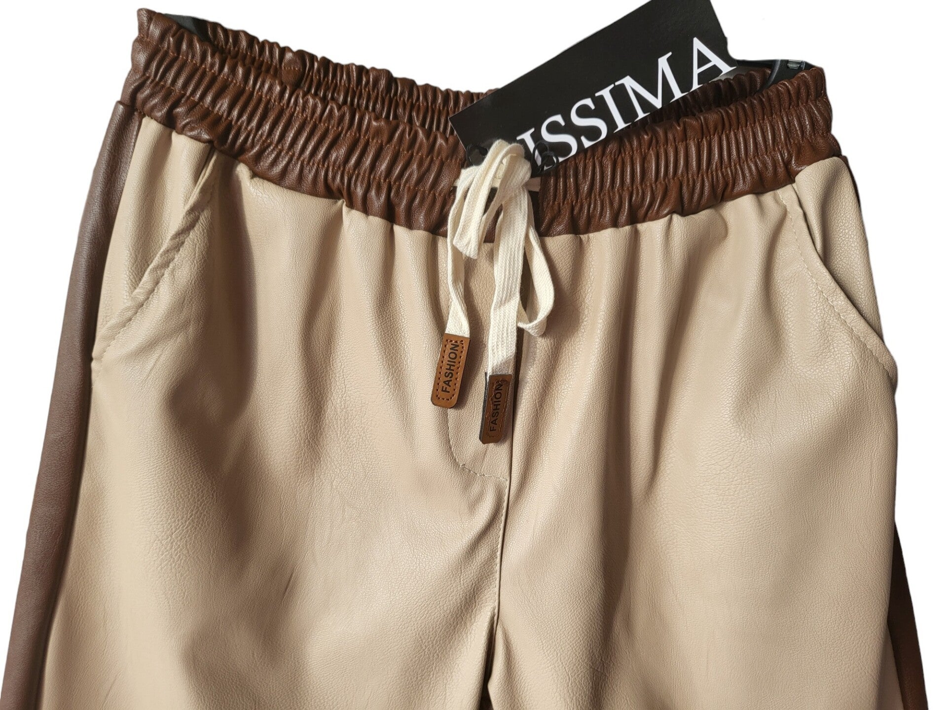 Kunstlederhose dunkelbeige/schokolade, Gr. 38 - 42, 1x verfügbar