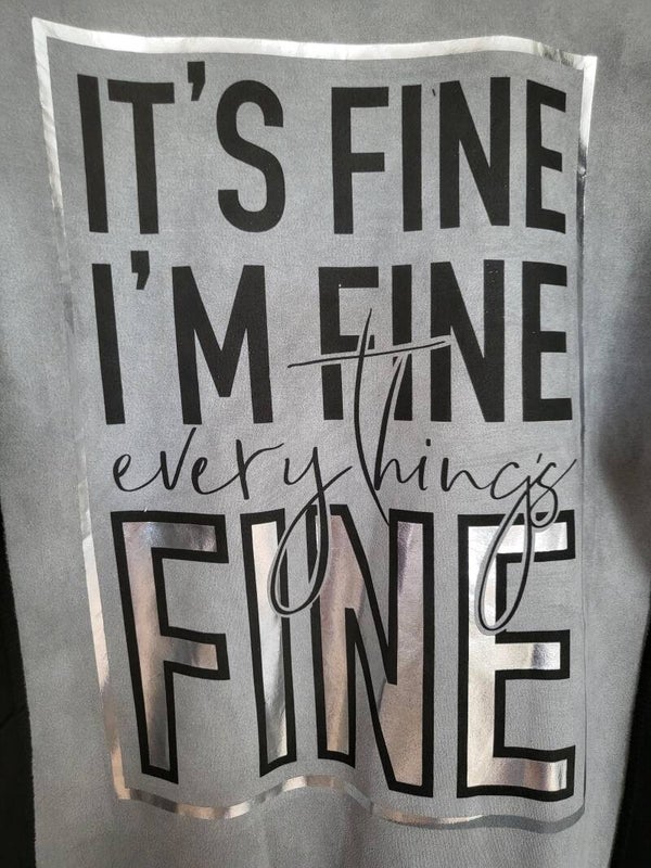Pullover schwarz/grau "It's fine - I'm fine", Gr. 40 - 42/44, 1x verfügbar
