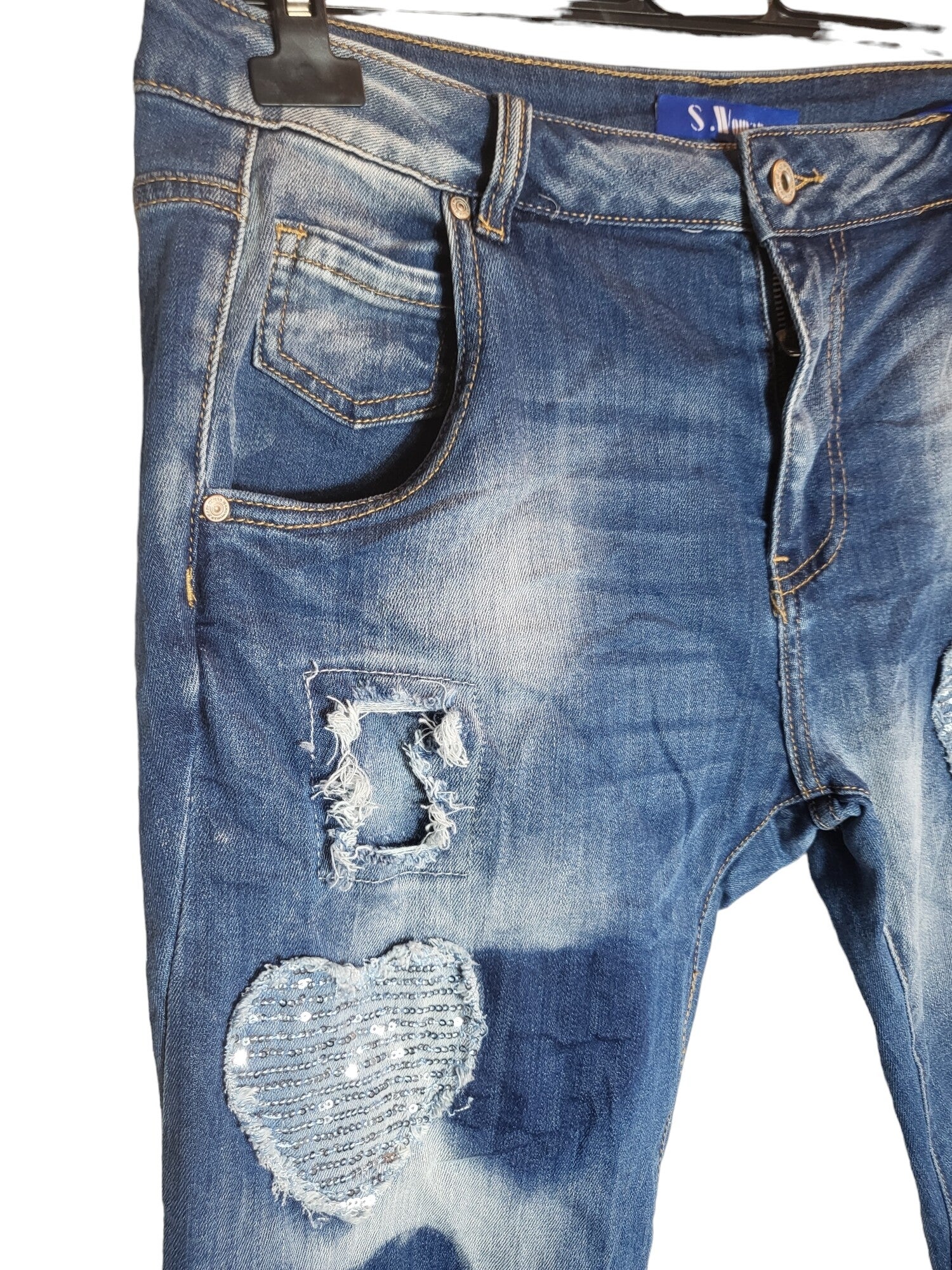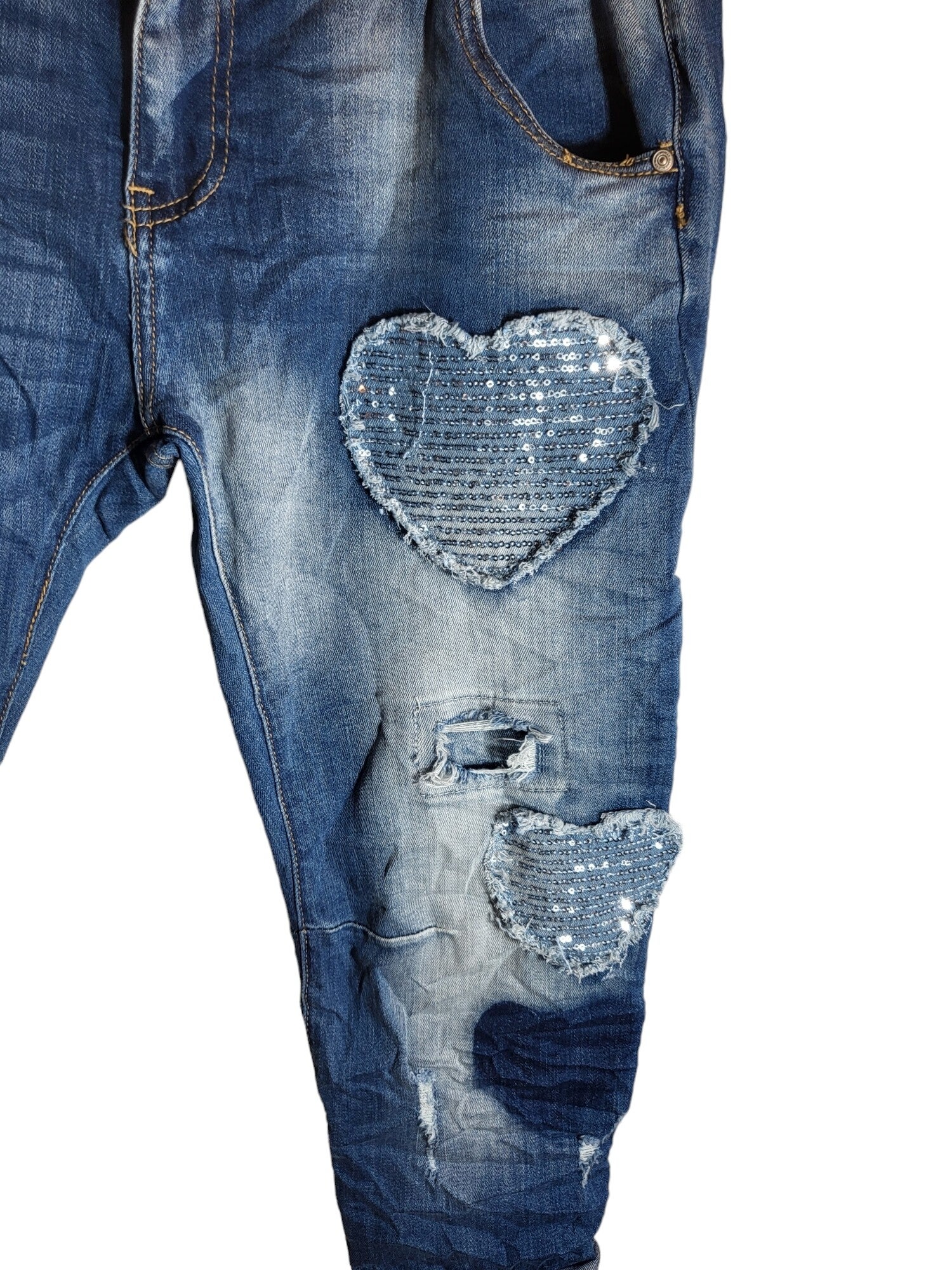 Jeans mit Paillettenherz, Gr. L (42/44), 1x verfügbar