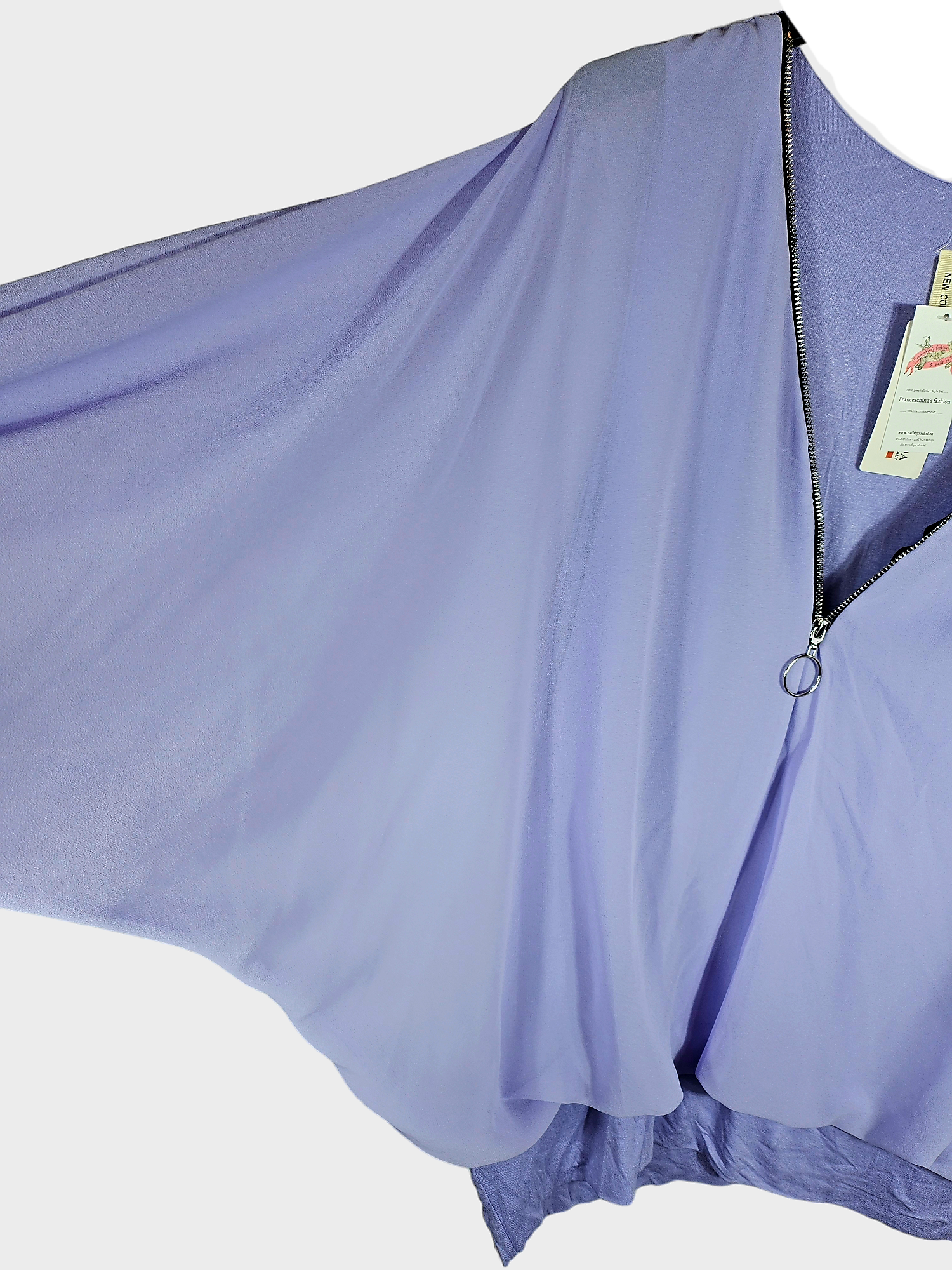 Fledermausshirt langarm lila mit Reissverschluss, Gr. 46 - 50, 1x verfügbar