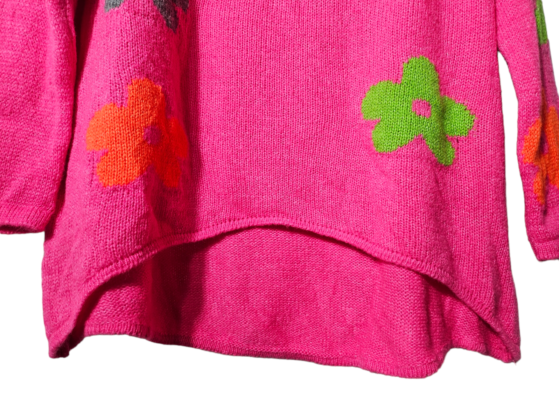 Rollkragen - Strickpullover pink mit Blumen, Gr. 44 - 46, 1x verfügbar
