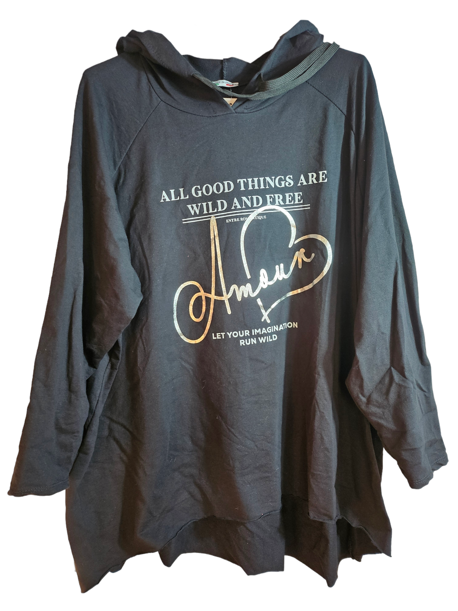 Kapuzensweatshirt schwarz "All good things...", Gr. 46 - 50, 1x verfügbar